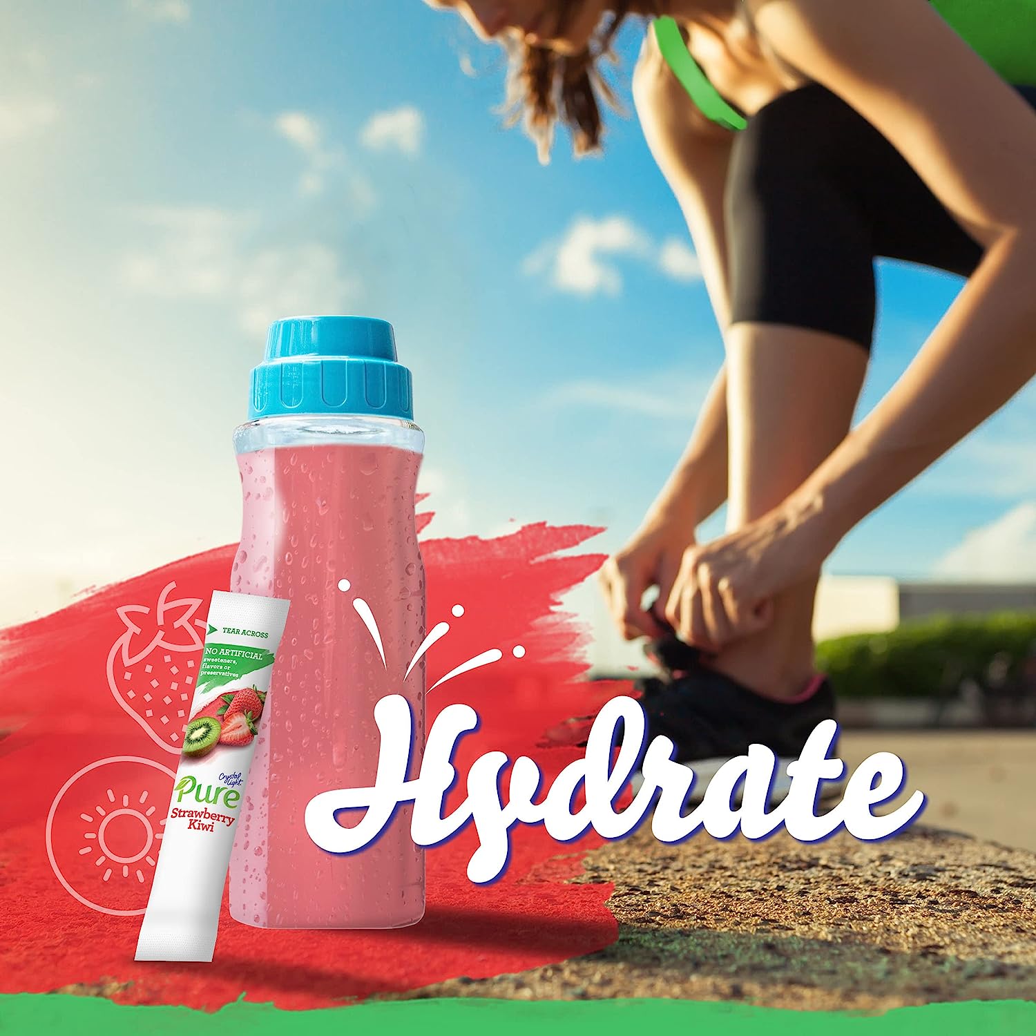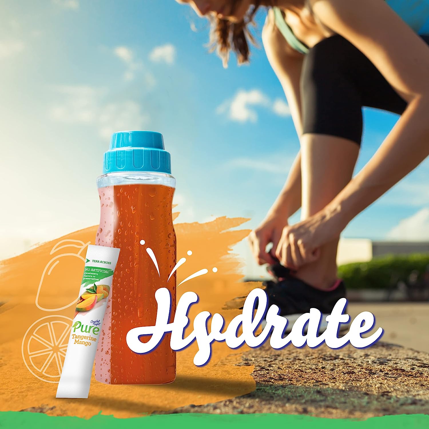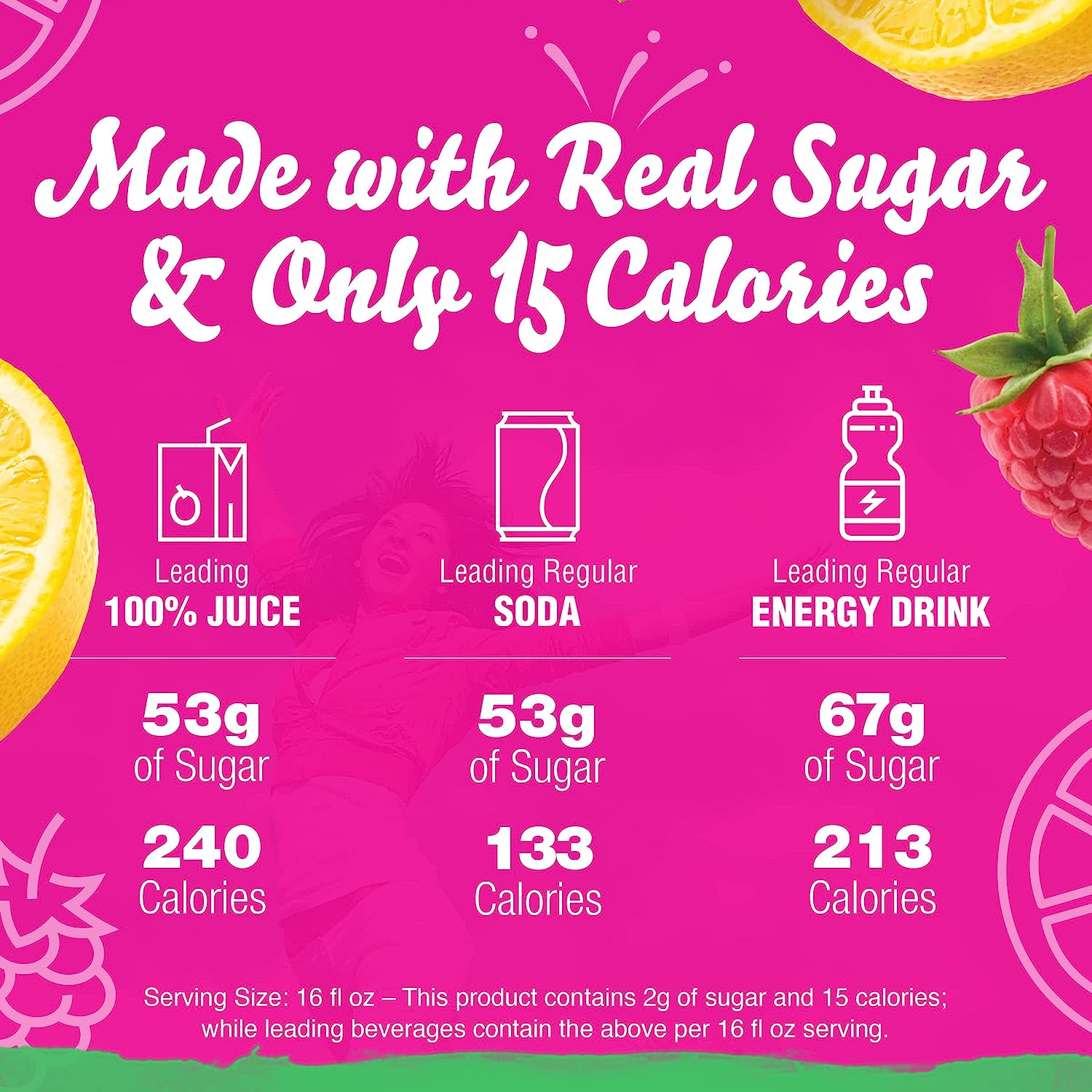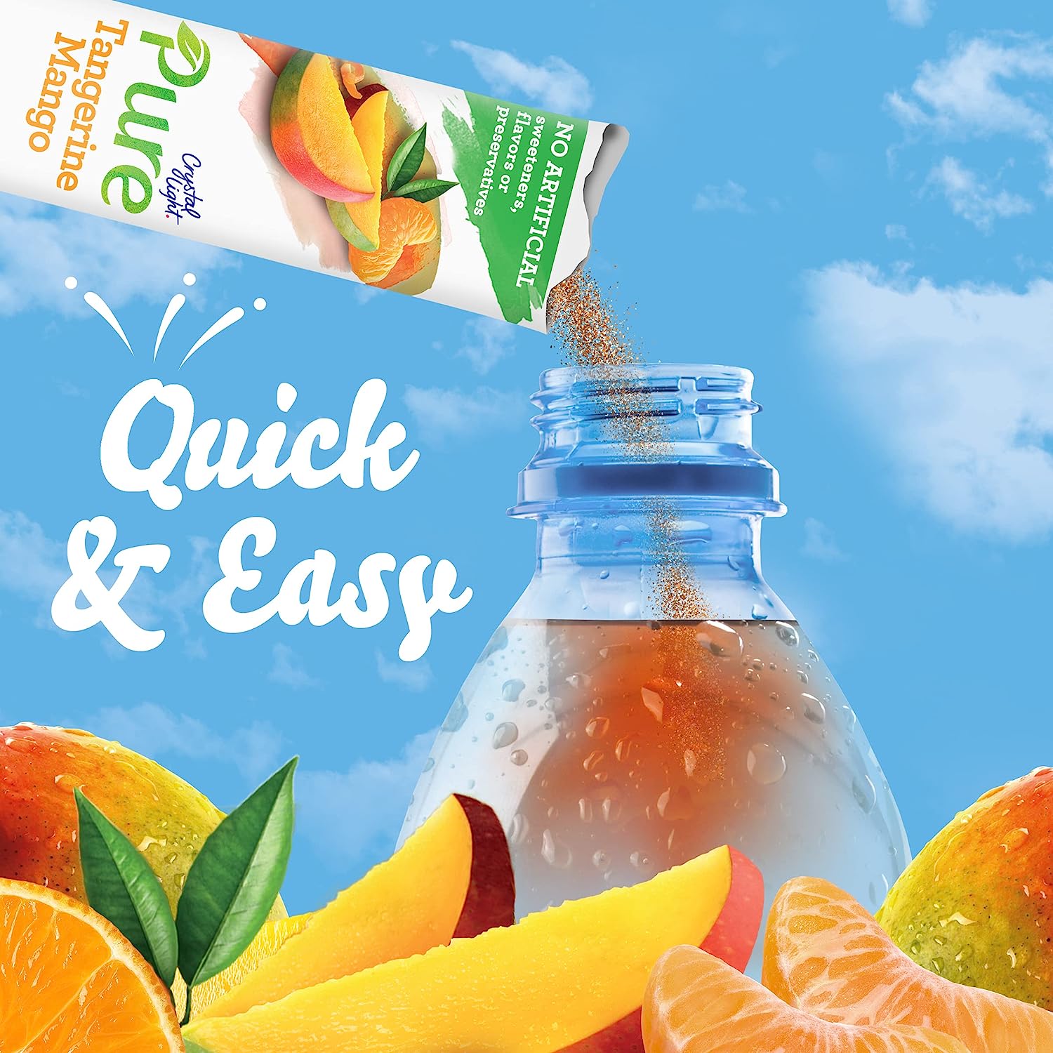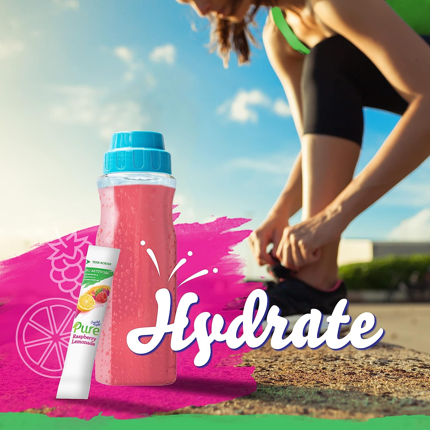 Crystal Light Pure Naturally Flavored Lemonade Powdered Drink Mix is a deliciously fruity drink you can enjoy anywhere. This powdered lemonade drink has no artificial sweeteners, flavors, or preservatives and has 90 percent fewer calories than other leading beverages (this product 10 calories, leading beverages 100 calories), so you don't have to choose between taste and calories. A total of 5 individual pitcher packs come pre-portioned in this canister of powdered lemonade mix for easy mixing without measuring, so you can enjoy a refreshing glass of Crystal Light Pure Lemonade any time. Simply empty one lemonade packet into a pitcher with 2 quarts of water, stir, and enjoy! All the flavor and no artificial sweeteners, flavors, or preservatives, just the way you like it.