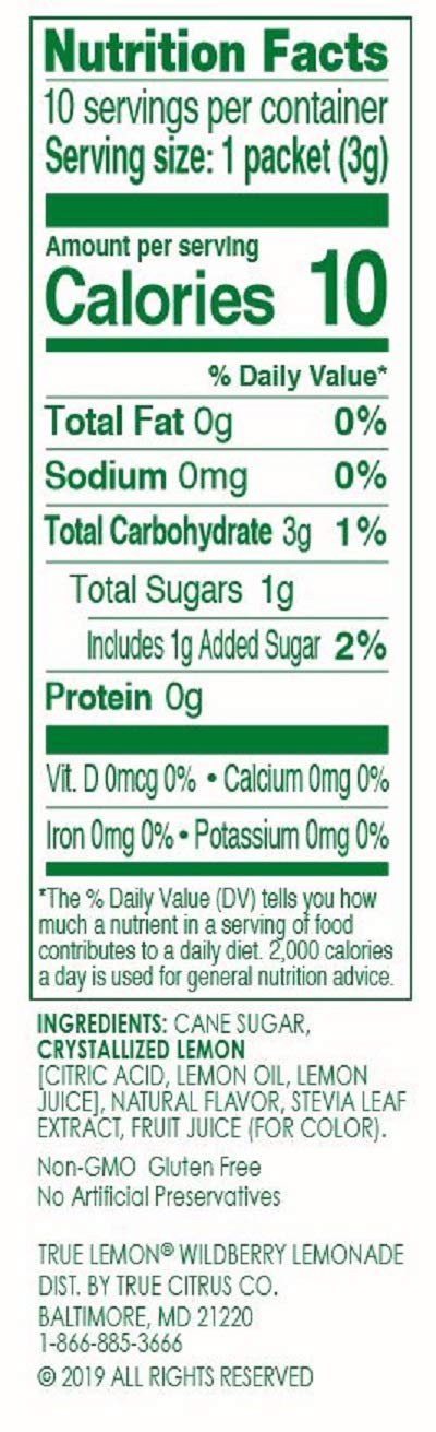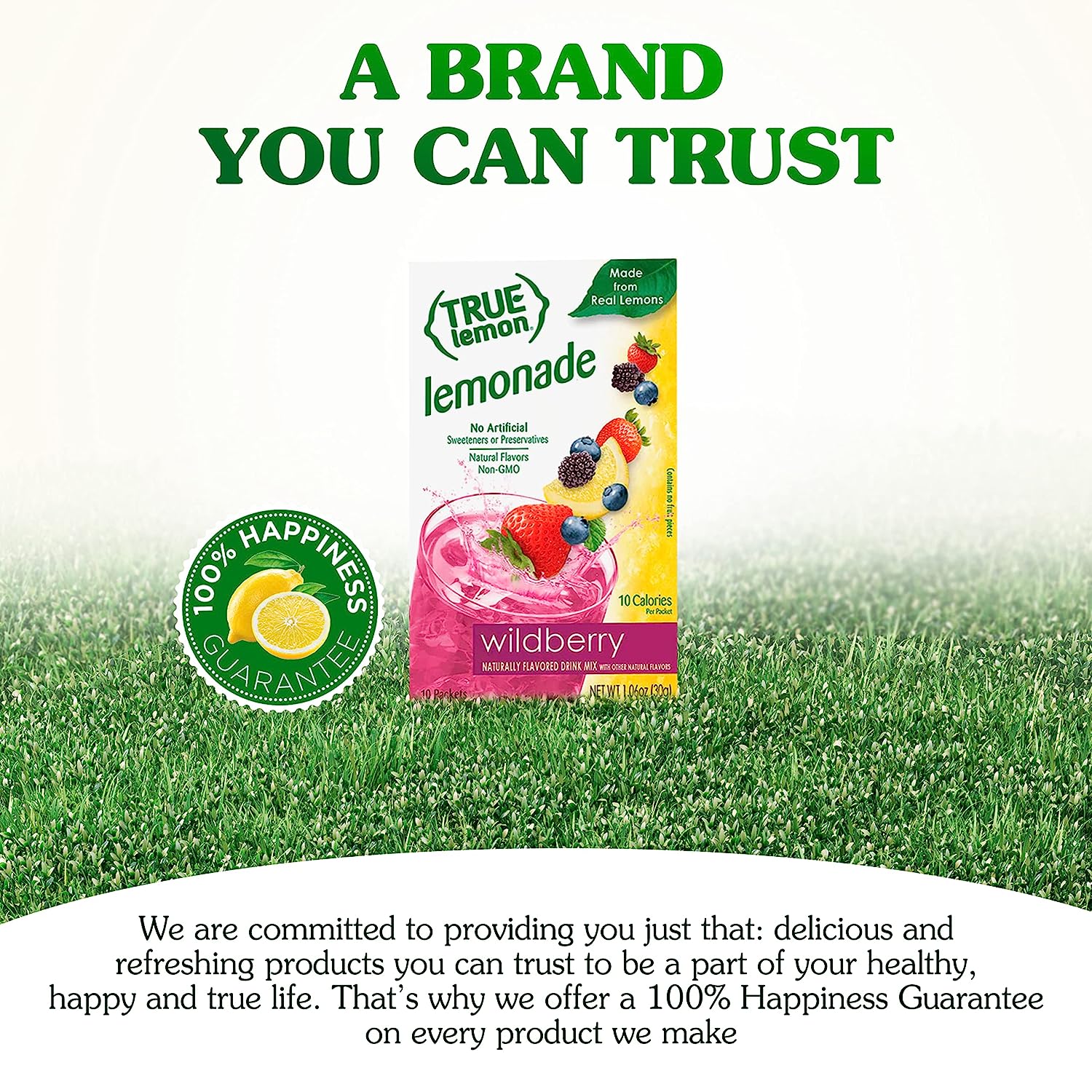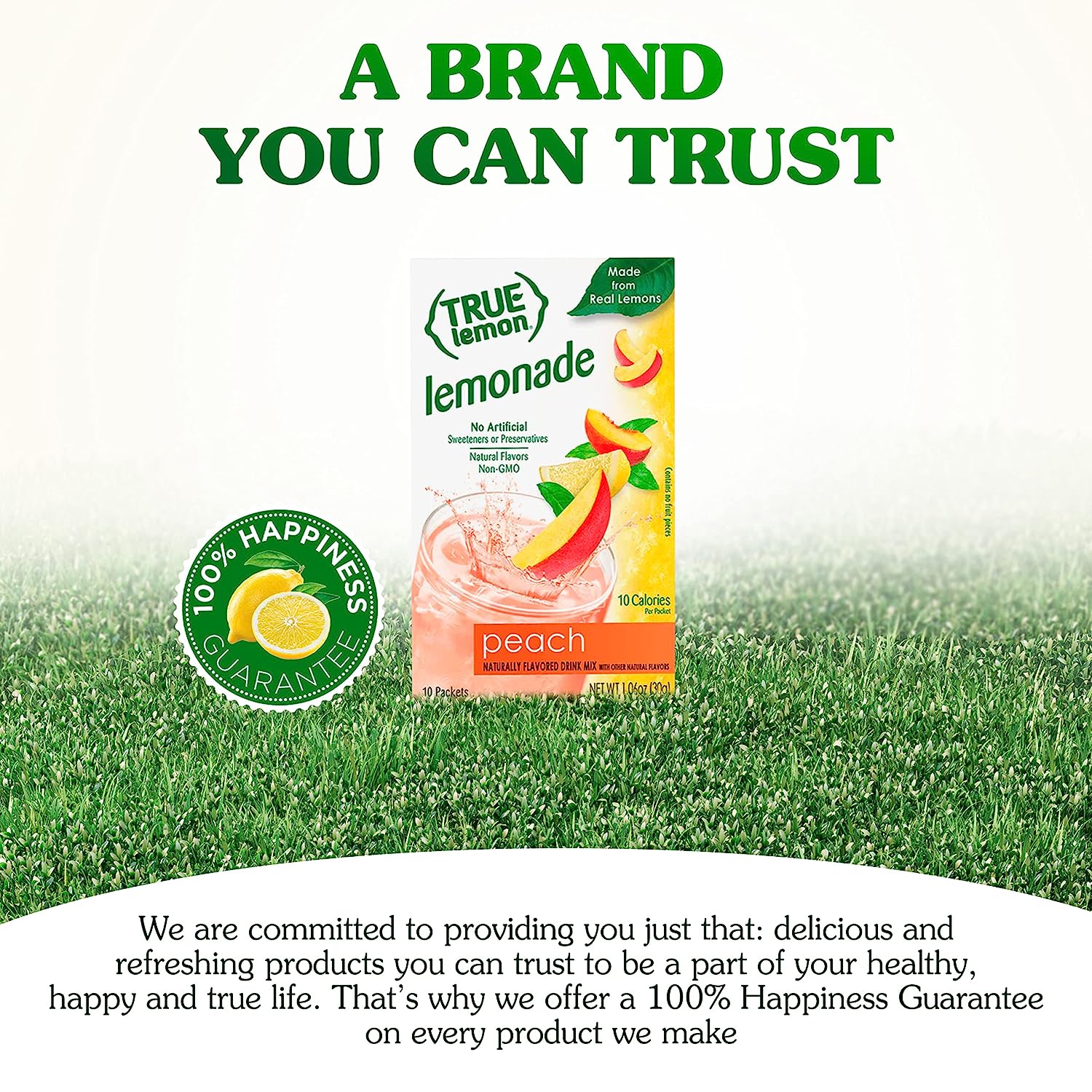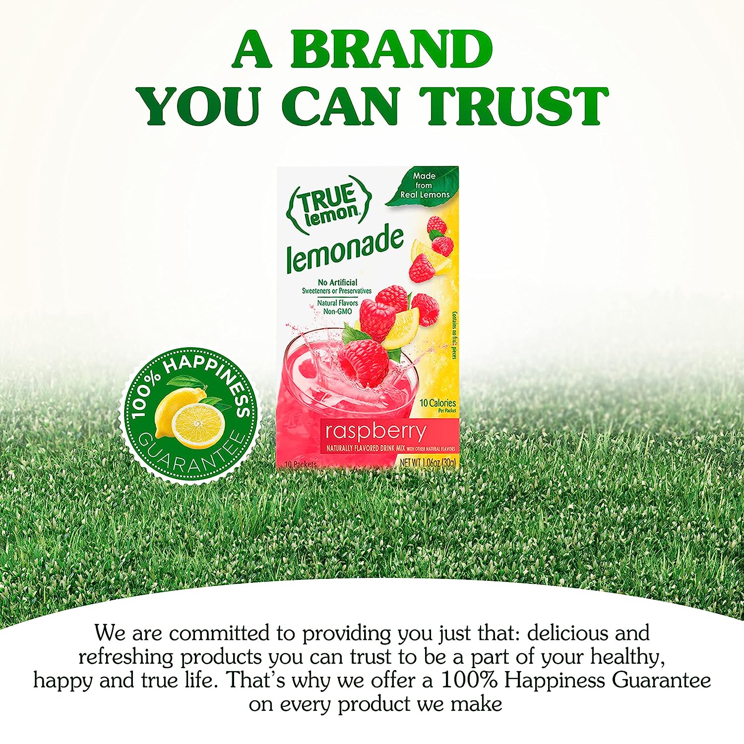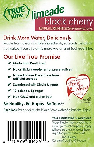 "TRUE LEMON Original Lemonade Drink Mix is made from real lemon juice and oils and naturally sweetened with stevia. Made with simple and clean ingredients that you can pronounce, this award-winning lemonade mix will enhance the flavor of your water so you can drink more of it and help fight dehydration. Our TRUE LEMON Original Lemonade Drink Mix contains only 10 calories per powdered drink mix stick packet (or 5 calories per serving for 2 quart size box). TRUE CITRUS was founded as a way to answer the question: why hasn’t anyone been able to put quality, fresh-squeezed lemon taste into a packet form so it’s convenient for everyone, everywhere? Today, the TRUE CITRUS family includes over 100 delicious and refreshing products. These include our tasty and hydrating low-calorie Drink Mixes and our flavorful salt-free Seasoning Blends."