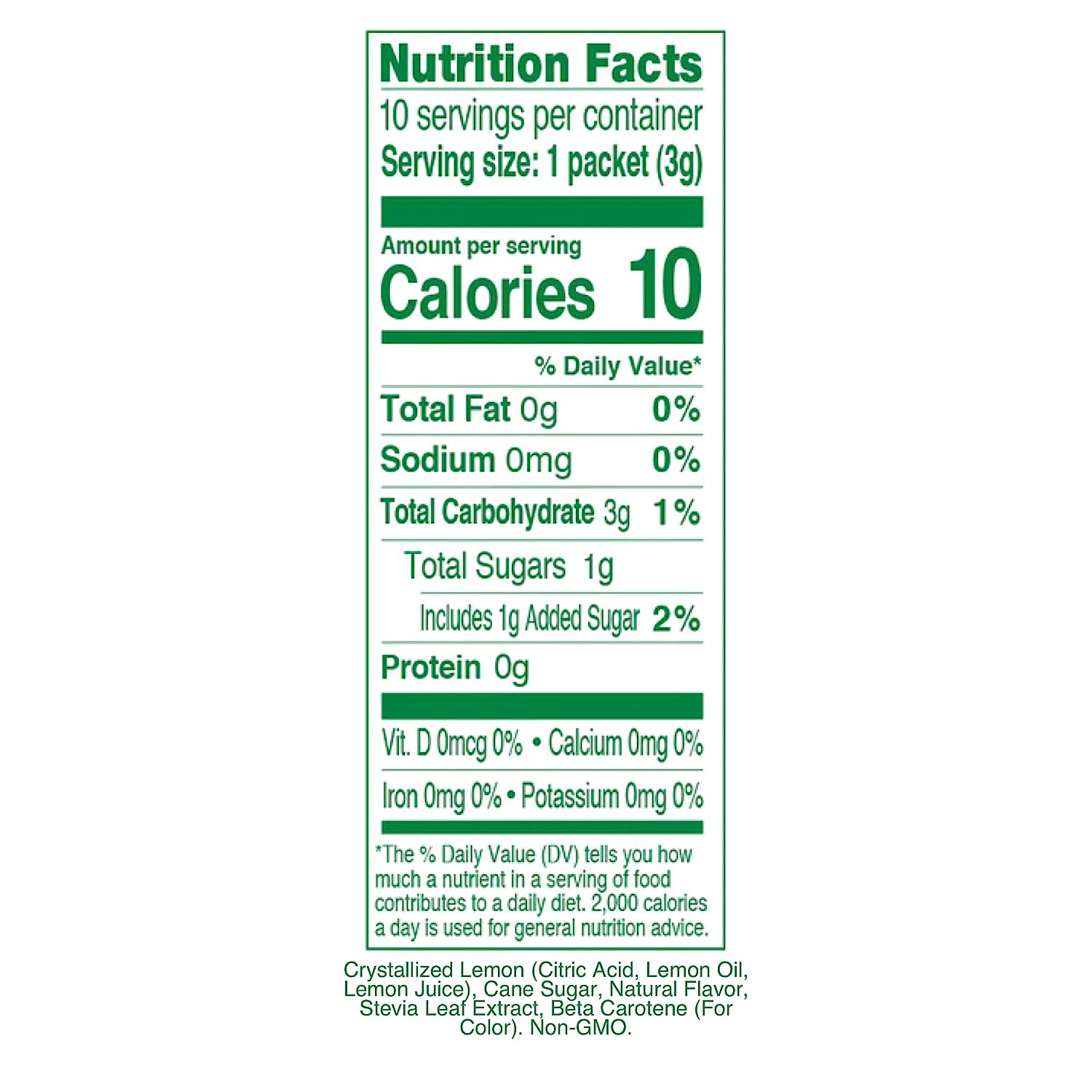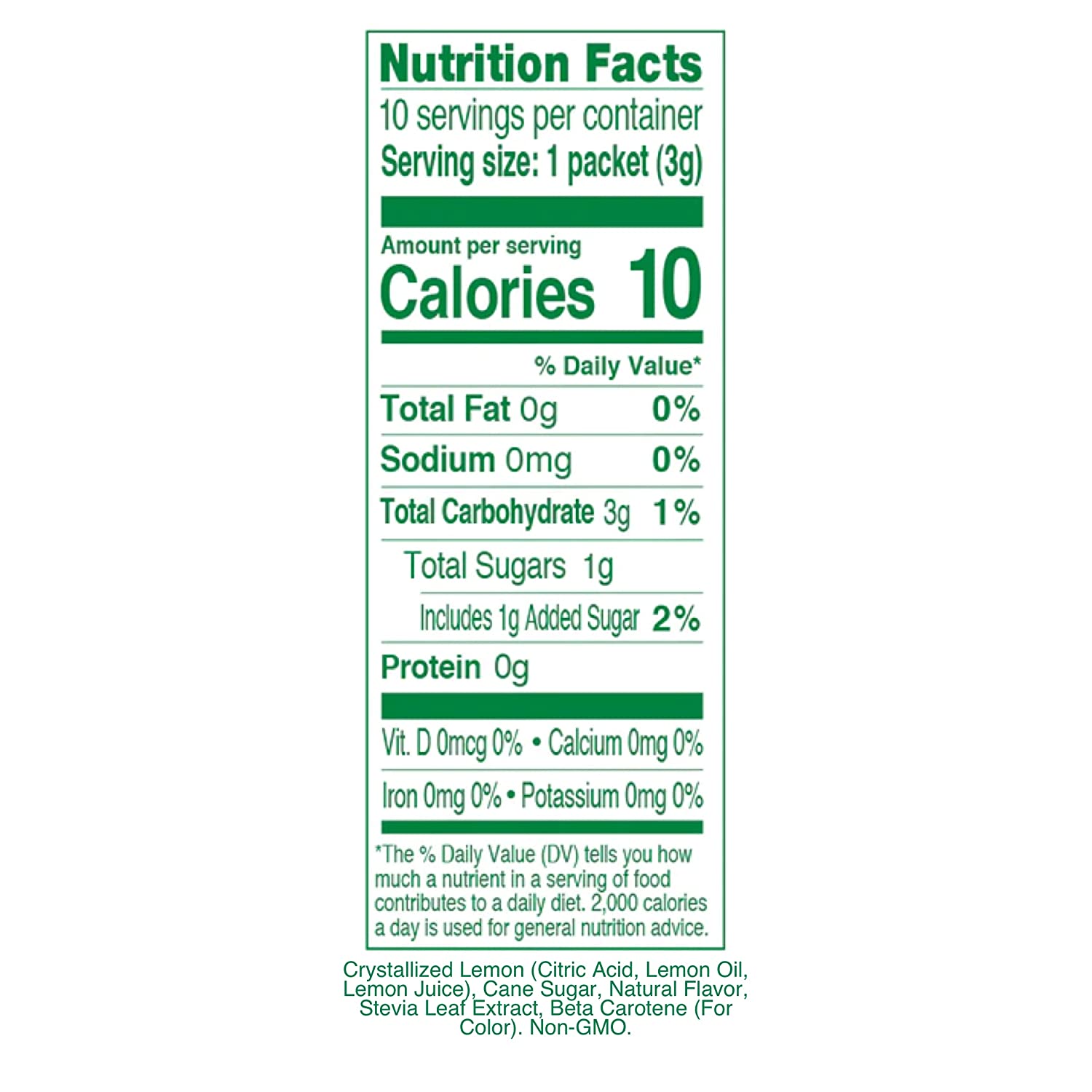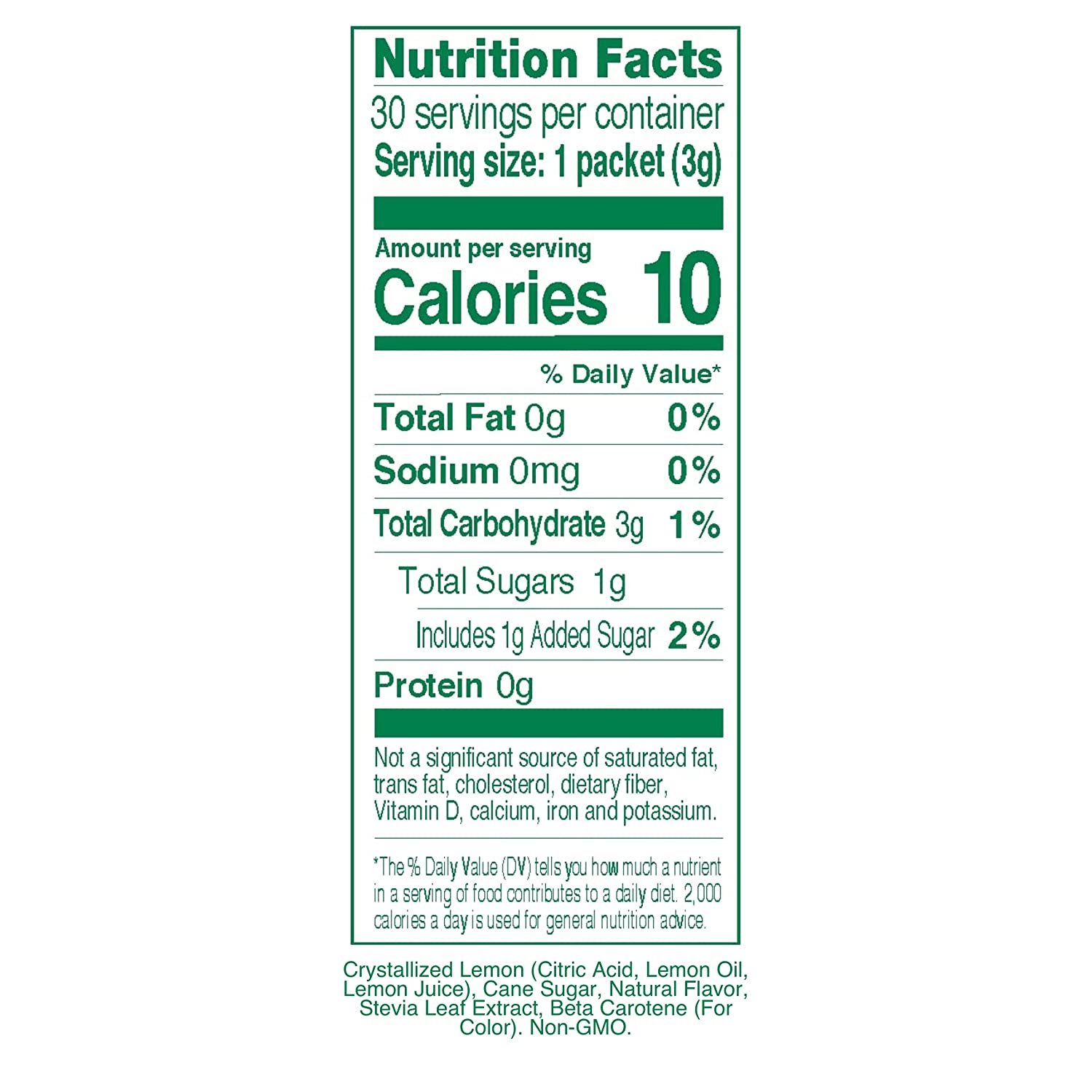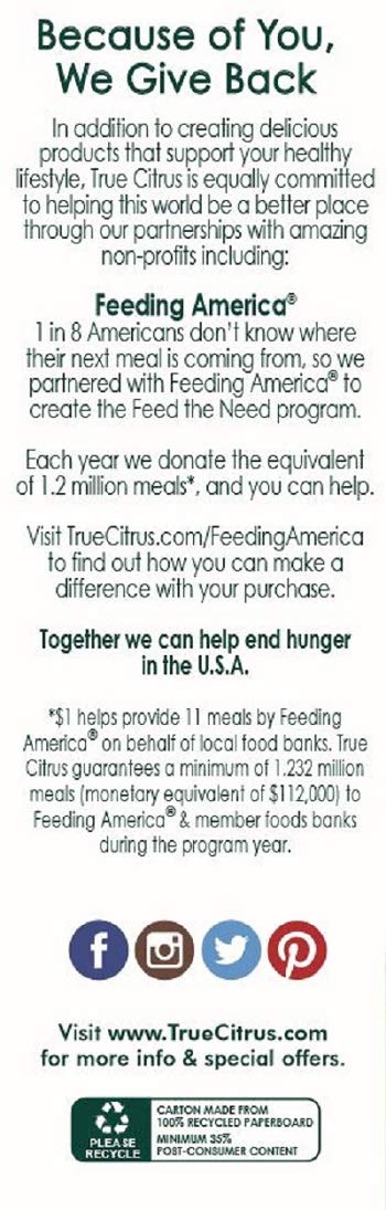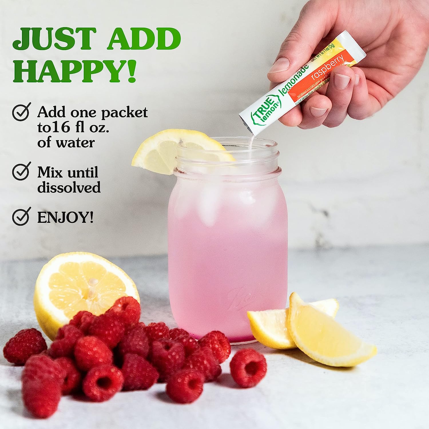 "TRUE LEMON Original Lemonade Drink Mix is made from real lemon juice and oils and naturally sweetened with stevia. Made with simple and clean ingredients that you can pronounce, this award-winning lemonade mix will enhance the flavor of your water so you can drink more of it and help fight dehydration. Our TRUE LEMON Original Lemonade Drink Mix contains only 10 calories per powdered drink mix stick packet (or 5 calories per serving for 2 quart size box). TRUE CITRUS was founded as a way to answer the question: why hasn’t anyone been able to put quality, fresh-squeezed lemon taste into a packet form so it’s convenient for everyone, everywhere? Today, the TRUE CITRUS family includes over 100 delicious and refreshing products. These include our tasty and hydrating low-calorie Drink Mixes and our flavorful salt-free Seasoning Blends."
