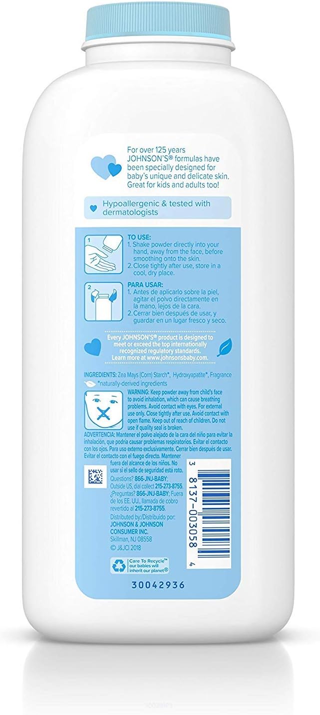 Johnson's Baby Powder Pure Cornstarch absorbs excess wetness from the skin to keep you dry and has a soft texture to help your skin feel smooth and fresh. Clinically proven mildness.