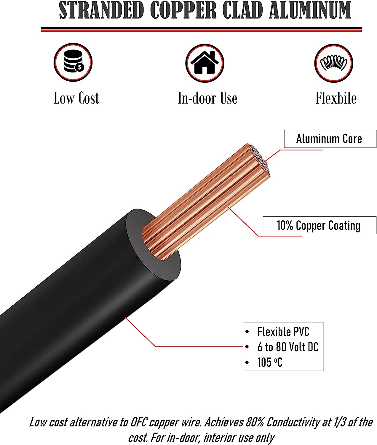• Low-cost alternative to OFC copper wire. Achieves 80% conductivity at 1/3 of the cost.