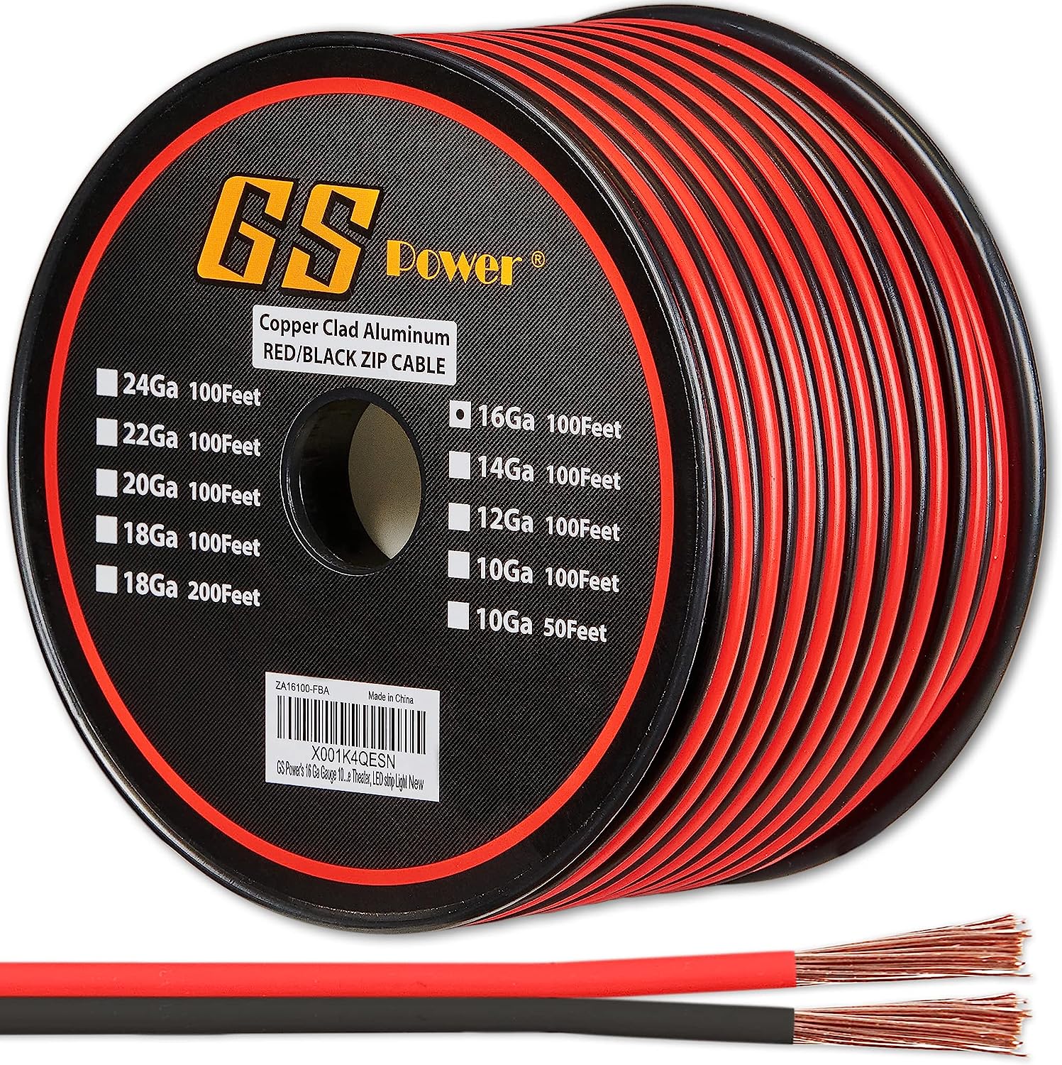 • 16 Gauge Copper-Clad aluminum(CCA) 100 FT red & black bonded Zip Cord Wire