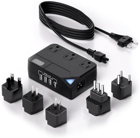 250W Converter Plug WAUDM International Travel Converter with 4 USB Ports, Reduces 220V to 110V, Suitable for 100V-240V Areas