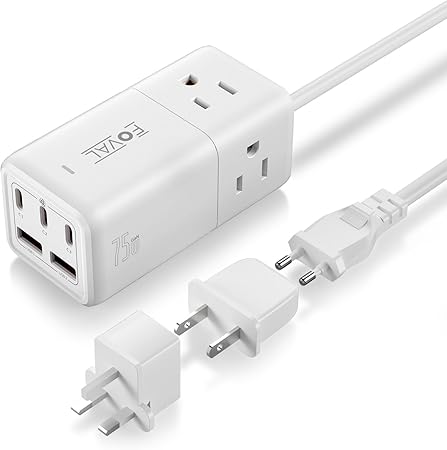 European Travel Plug Adapter, FOVAL US to UK Europe Power Strip 75W USB C Charger with 5 USB Ports, 3 AC Outlets, 5ft Extension Cord, for Spain, France, Ireland, Travel Home Cruise Ship