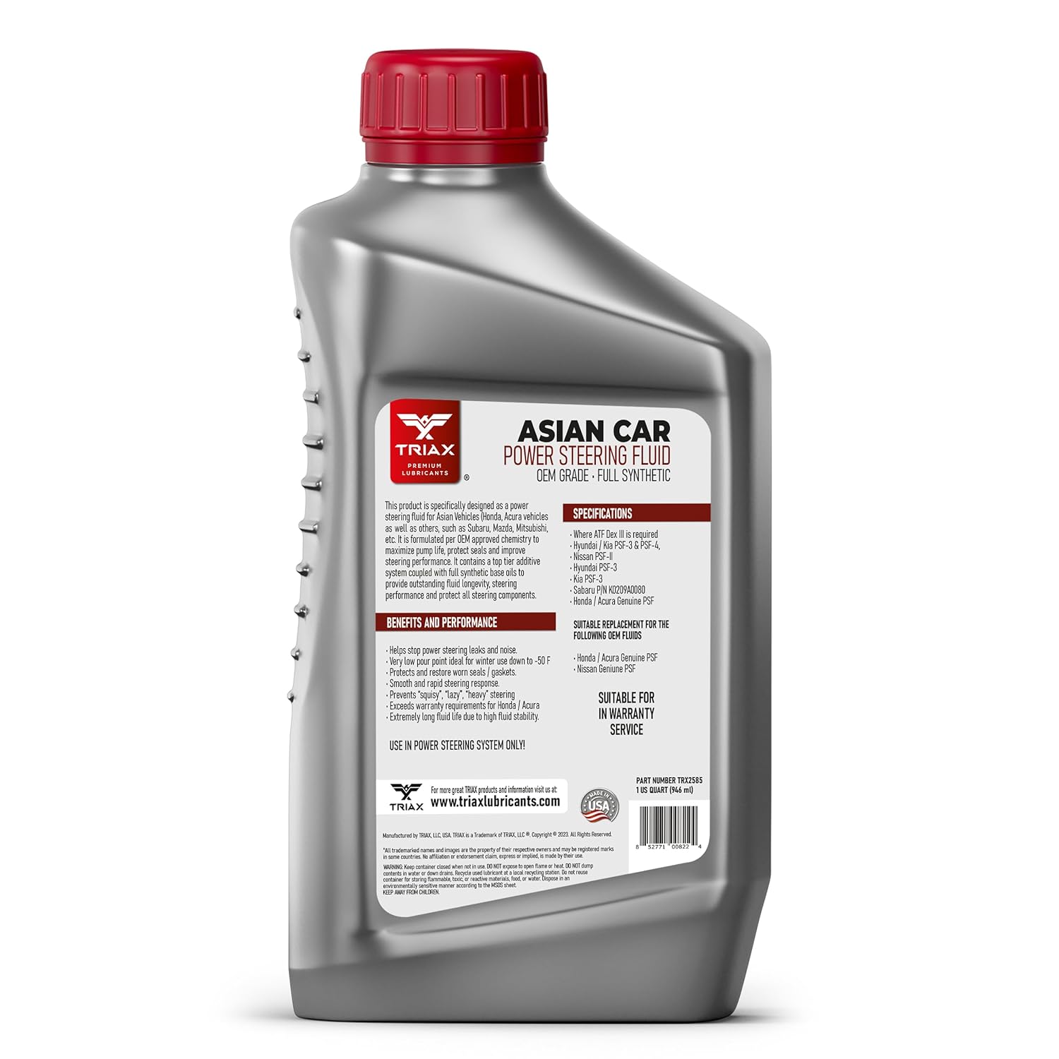 TRIAX Asian Car PSF, Synthetic Power Steering Fluid, Compatible with Honda, Acura, Mazda, Subaru, and Mitsubishi, OEM Grade, Fill for Life (1 Quart)