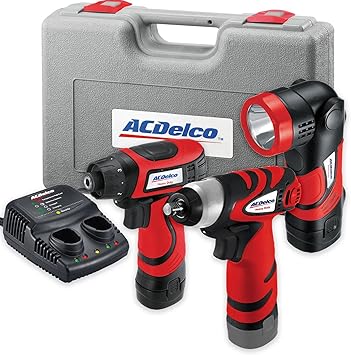 ACDelco ARD847Li Cordless 8V Li-ion compact Drill/Driver Impact Wrench 3 PC Combo Kit with Case, LED Work Light, 2-Port Charger, and 2 Batteries