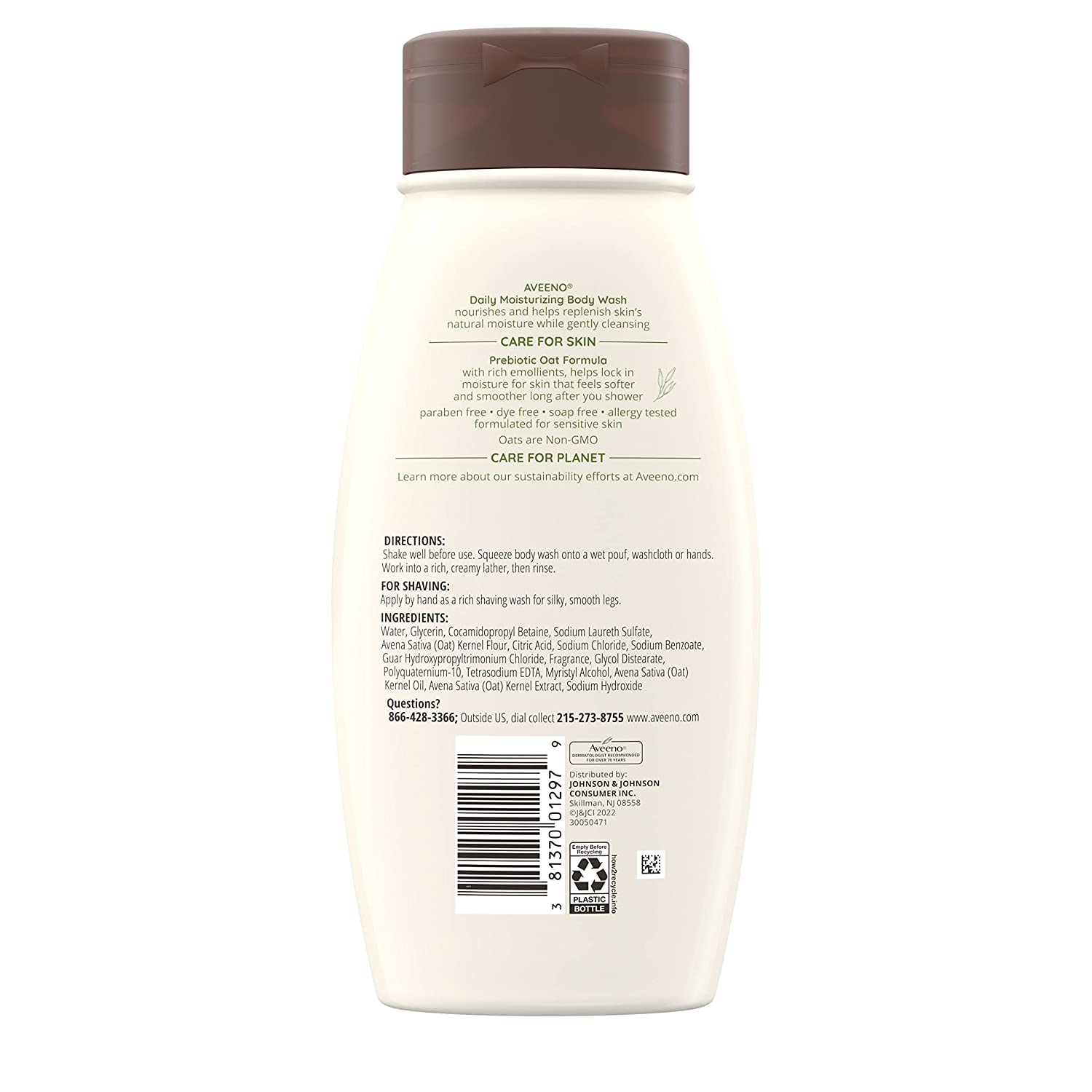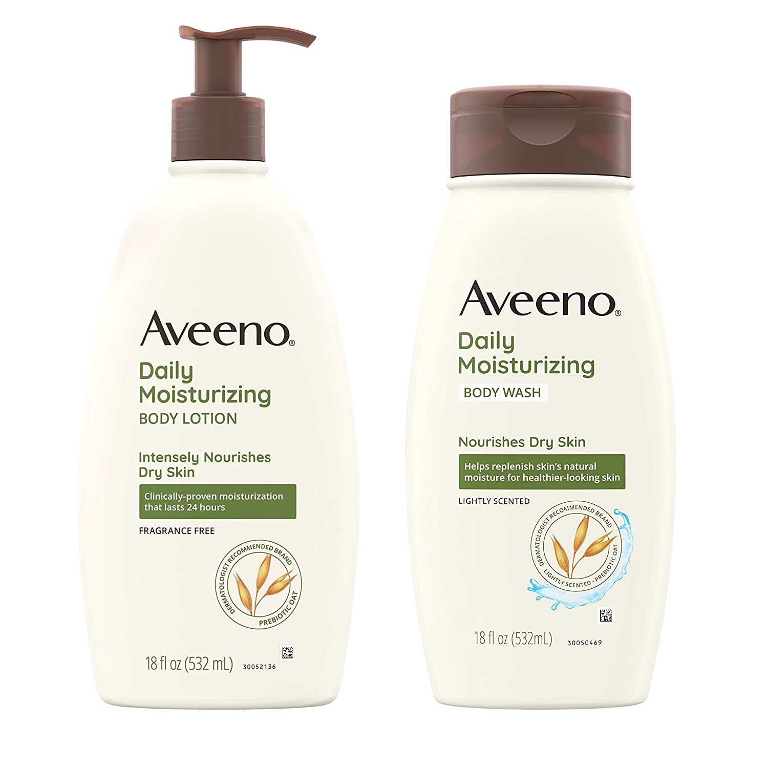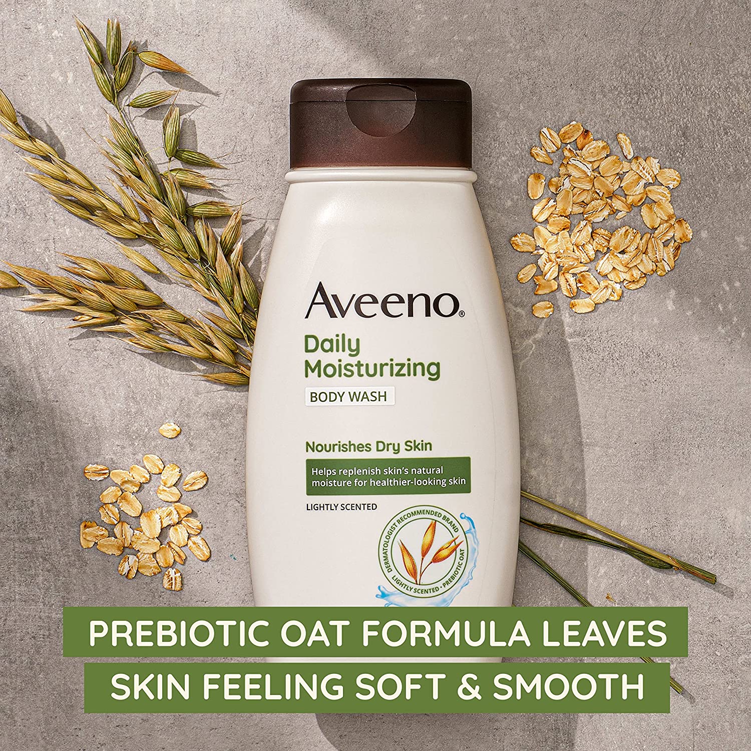 Aveeno Daily Moisturizing Body Lotion with Prebiotic Oat formula intensely nourishes dry skin. Formulated with a soothing prebiotic oat, the fragrance-free lotion has clinically proven moisturization that lasts 24 hours. This daily body lotion nourishes and helps replenish skin's natural moisture barrier. The unique prebiotic oat formula absorbs quickly and nourishes dry skin with moisture, leaving your skin soft, beautiful and healthy-looking. Aveeno Daily Moisturizing Lotion's gentle formula does not contain fragrances, parabens, or dyes. From the dermatologist-recommended brand, this nourishing lotion for dry skin has been allergy tested and non-greasy, non-comedogenic, and gentle enough for daily use as part of a regular skincare and beauty routine. To use, apply daily as often as needed.