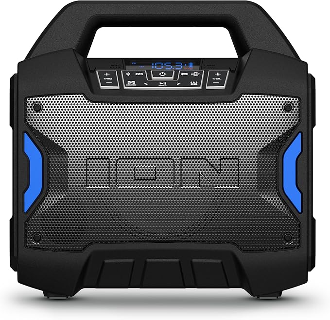 ION Tailgater Boom - Outdoor Portable Bluetooth Speaker with Mic in, FM Radio, USB Port, Battery, IPX5 Water-Resistant, Wireless Stereo-Link, App, 60W