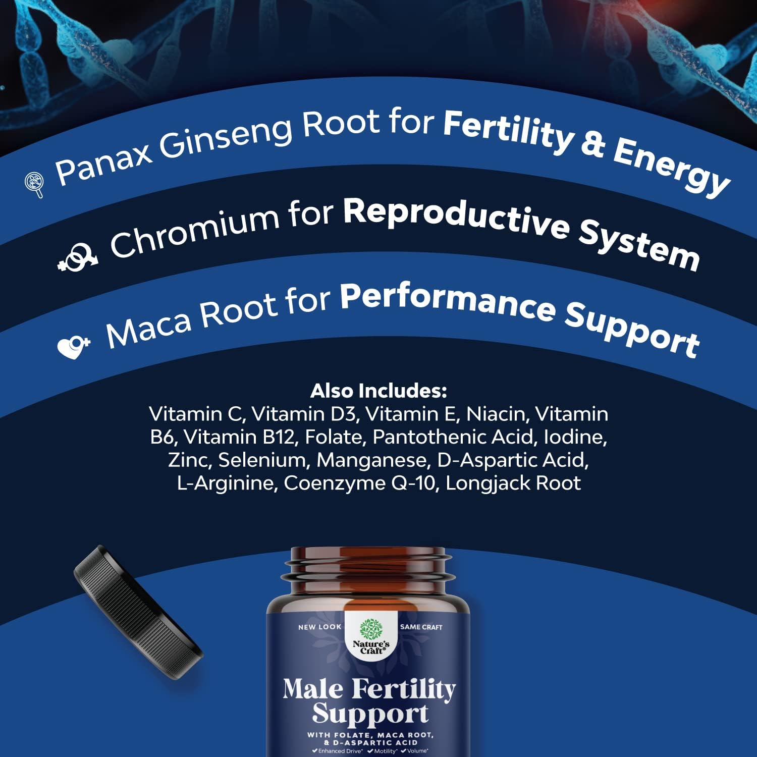 • Fertility blend for men - Our fertility supplements for men are packed with mens prenatal vitamins including d aspartic acid zinc for men folic acid 400mcg tongkat ali for men CoQ10 selenium and more