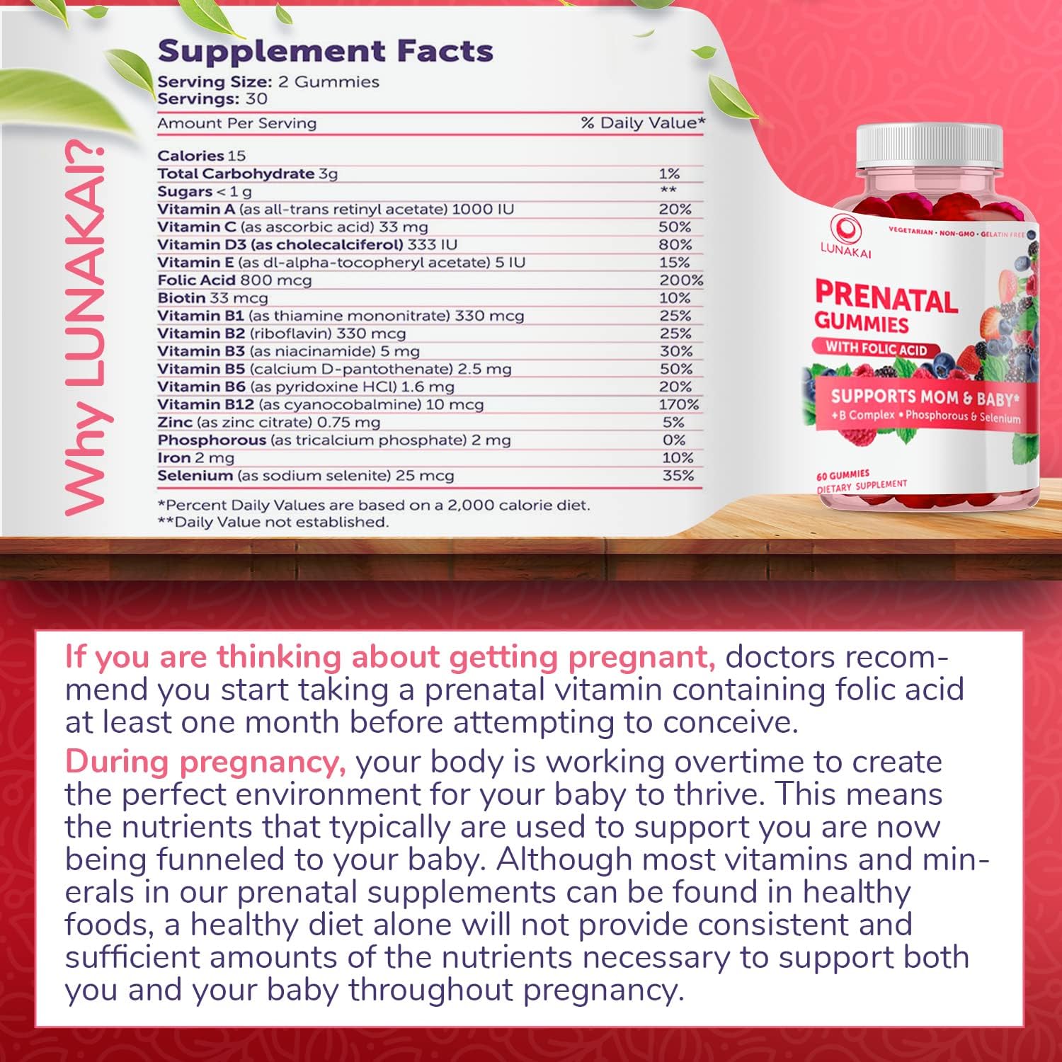 • Prenatal Gummies For Mom & Baby - Lunakai prenatal vitamins for women have specifically chosen ingredients to help support the health and development of mom and baby with a delicious berry flavor