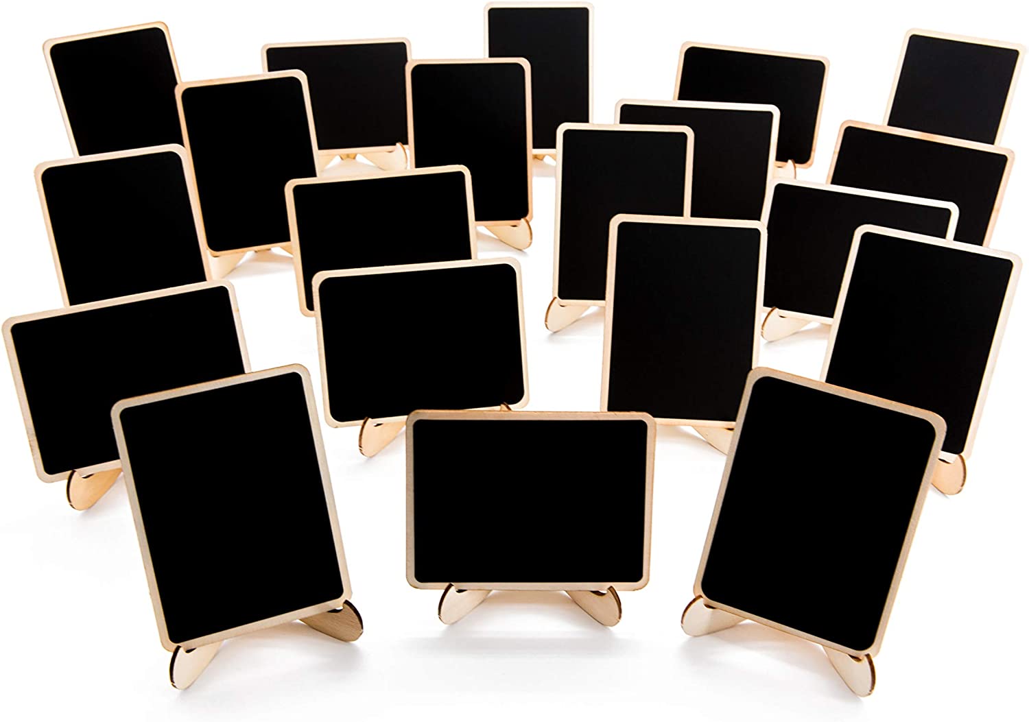 These mini chalkboard signs can be as food signs, place cards, name tags, table numbers and easily write messages, notes, prices, prayers and more. We can use it for Christmas, weddings, children's crafts, buffet tables, dinner parties and mini menu boards . Light quality and simple disassembly allow you to take it anywhere you want. Great for kids arts and crafts, Leave sweet words to your lover. Feature: Material: Wood Size: Approx. 4 * 3 inch Weight: 0. 47 oz Package included: 20 x Mini Chalkboards Warm notice : The chalkboards are not recommended to use liquid chalk markers to write on; You had better use regular chalks to write on them.