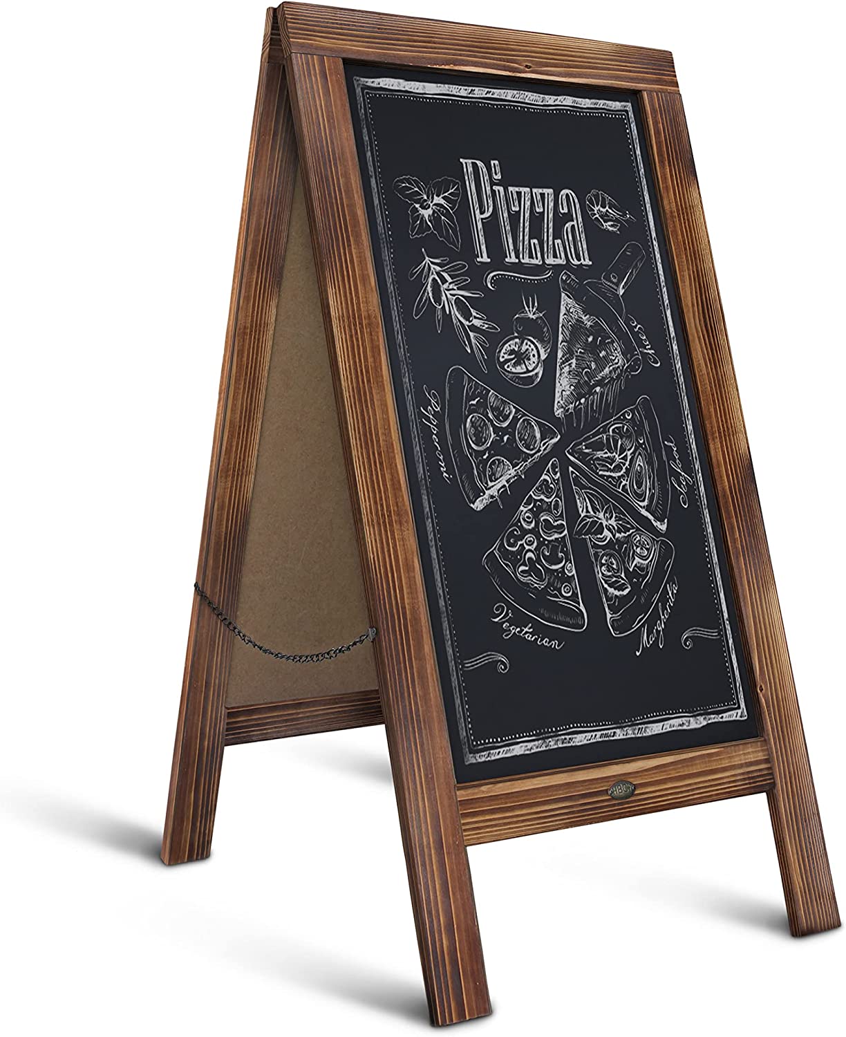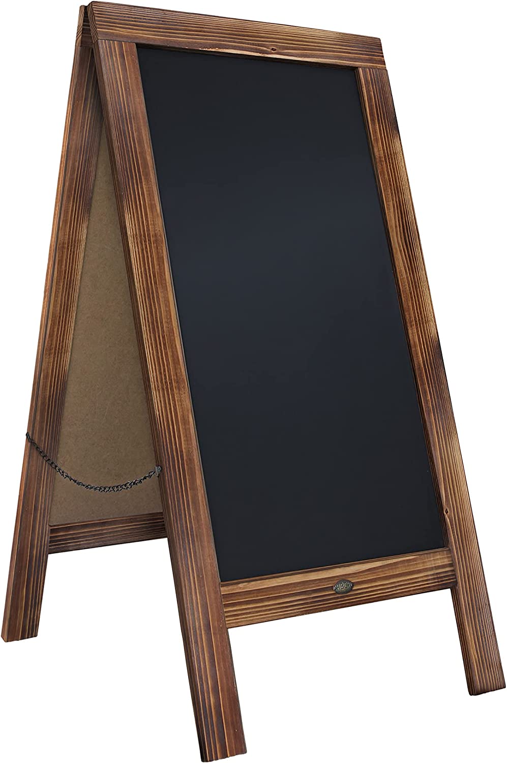 • Premium quality assurance: Made from solid pinewood, the A frame signs feature a sturdy build and will last for years to come. The standing chalkboard is also equipped with rust-proof hinges. The smooth surface ensures a pleasant writing experience.