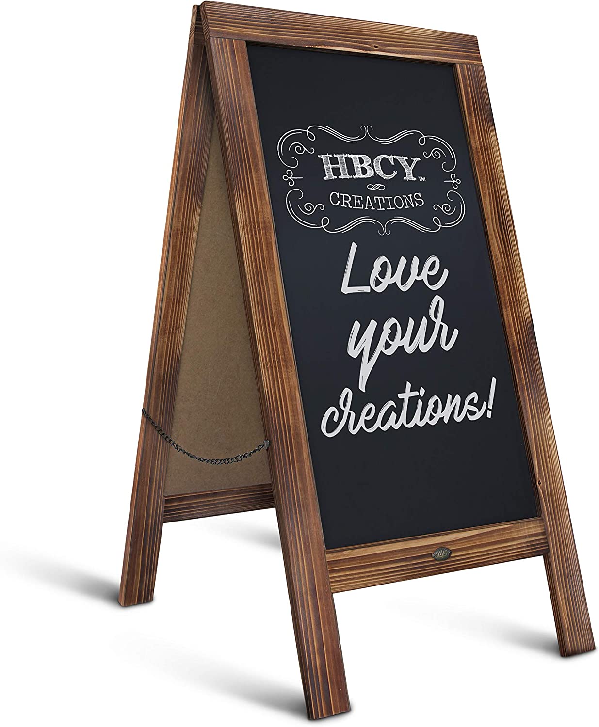 • Magnetic surface: In addition to offering the texture of a traditional wood street sign, our A frame chalkboard features magnetic porcelain steel so you can decorate it with letters, messages, photocards, jokes, etc. Compatible with liquid chalk markers as well as regular chalks.