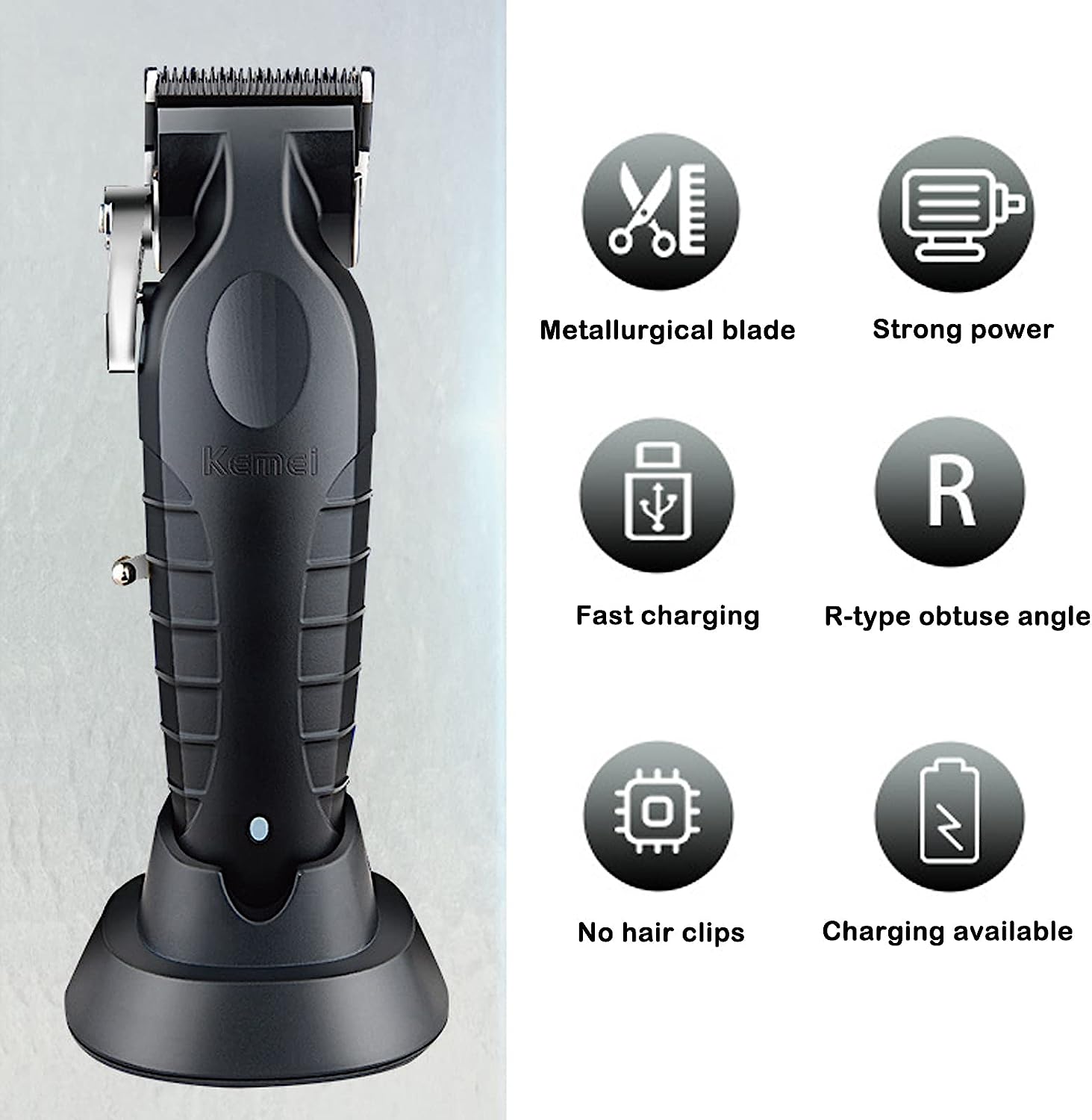 • Complete Accessories&Perfect Gift: In order to be more convenient to use, Kemei-i32 Gold Hair Clippers comes with all accessories required for professional barber use.include 1 trimmer, , 1 lubricating Oil, 1 cleaning brush, 1 comb,1 Flannel bag ,1 charging base and 6 limit guards (1mm,1.5mm, 2mm,3mm, 4.5mm, 6mm).It can be used on any occasion, your dad, husband or boyfriend will love this ideal hair trimmer.