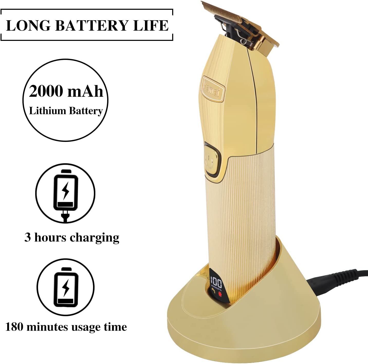 • USB Fast-Charge & LED display& Stand Base :Powered by a 2000mah lithium battery , charge for 3 hours and Using time over 180 minutes .Global universal voltage (100-240V) -- USB Quick Charger (Without plug adapter) can charge anytime anywhere by connecting with any type USB interface adapter , This design is for international use, easy to use for business trip or travel.THE LED display of this hair clipper clearly shows remaining percentage of battery and the prompt of charging and refueling.