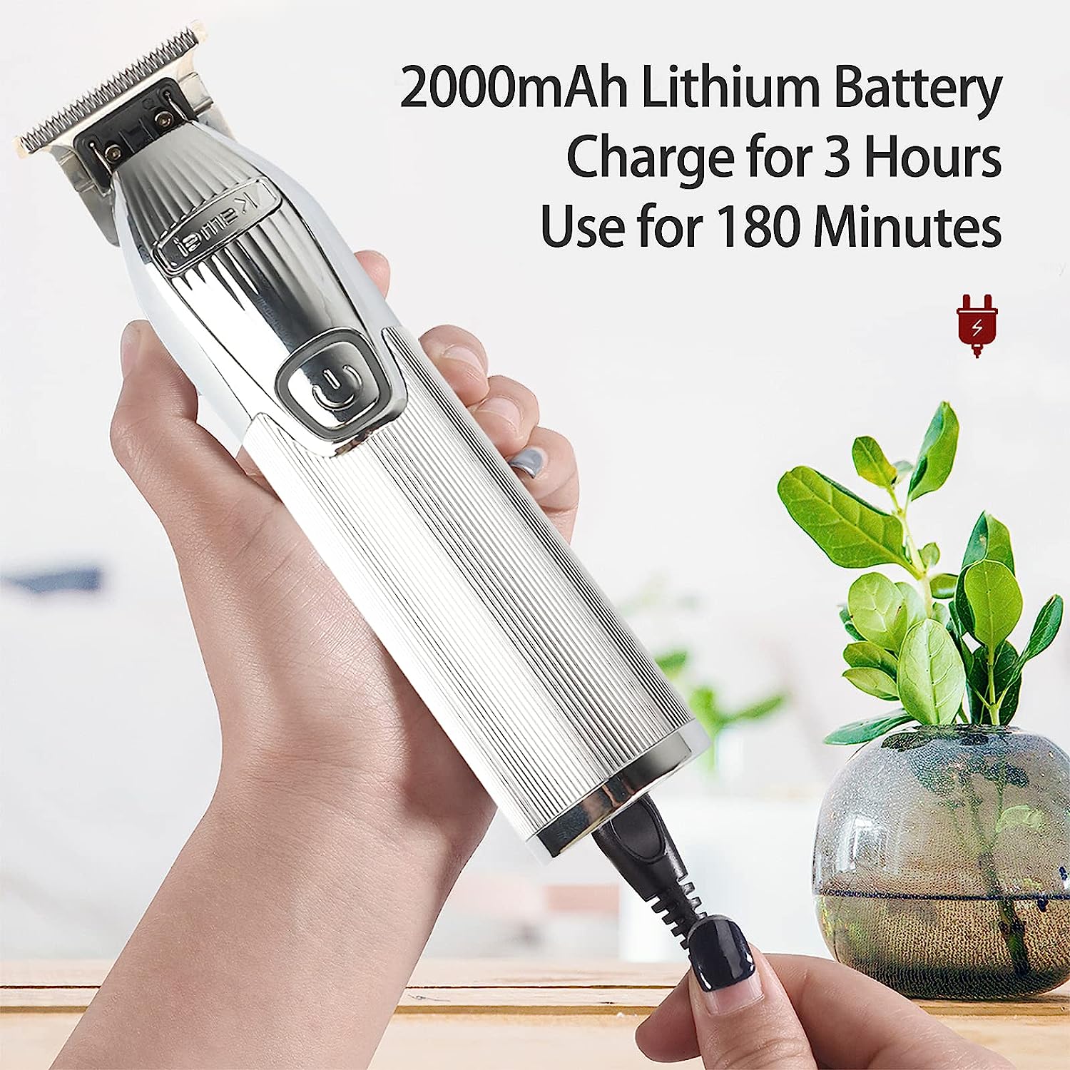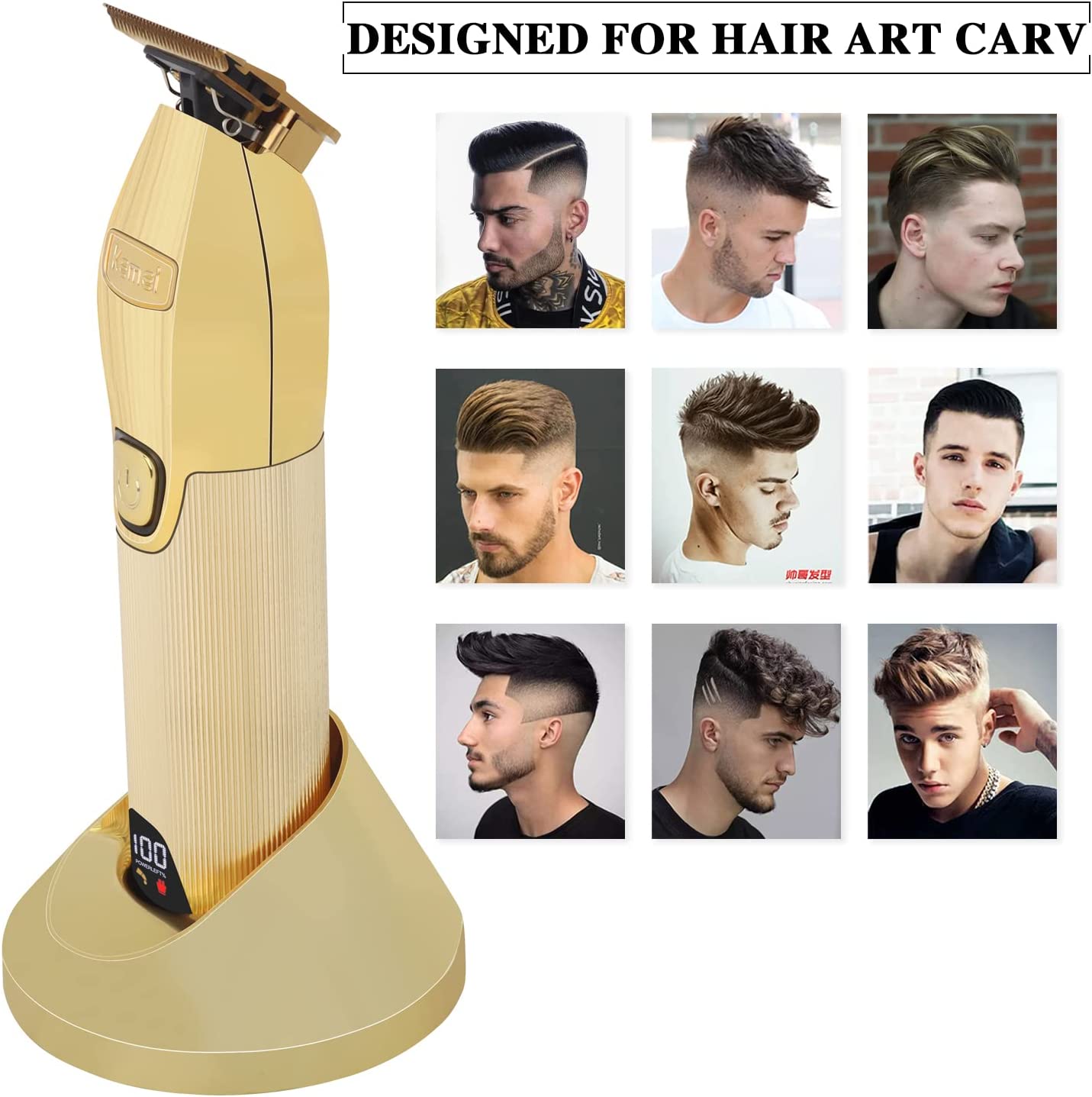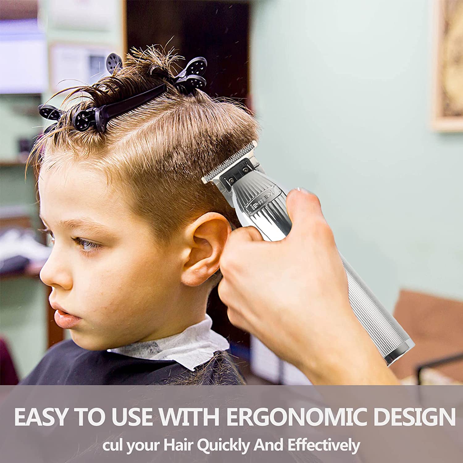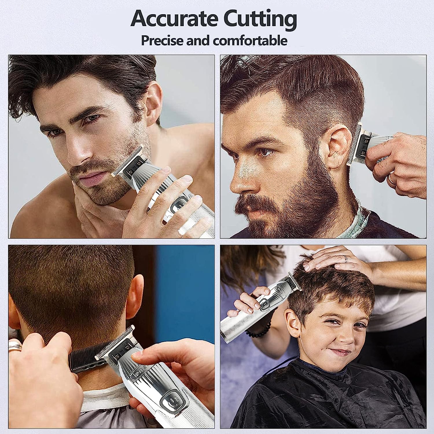 • Born for Personality - Ergonomic design hair clipper, all-metal body, stylish texture, Exquisite and compact for comfortable grip. Hanging T-Blades make you shave and cut freely, no matter from which direction. suitable for oil head, carving, vintage hair style, bald head,It works smoothly and quickly, automatic sharpening, no hair sticking, slow heat generation, wear resistance, without any irritation for Men, Kids, Babies.