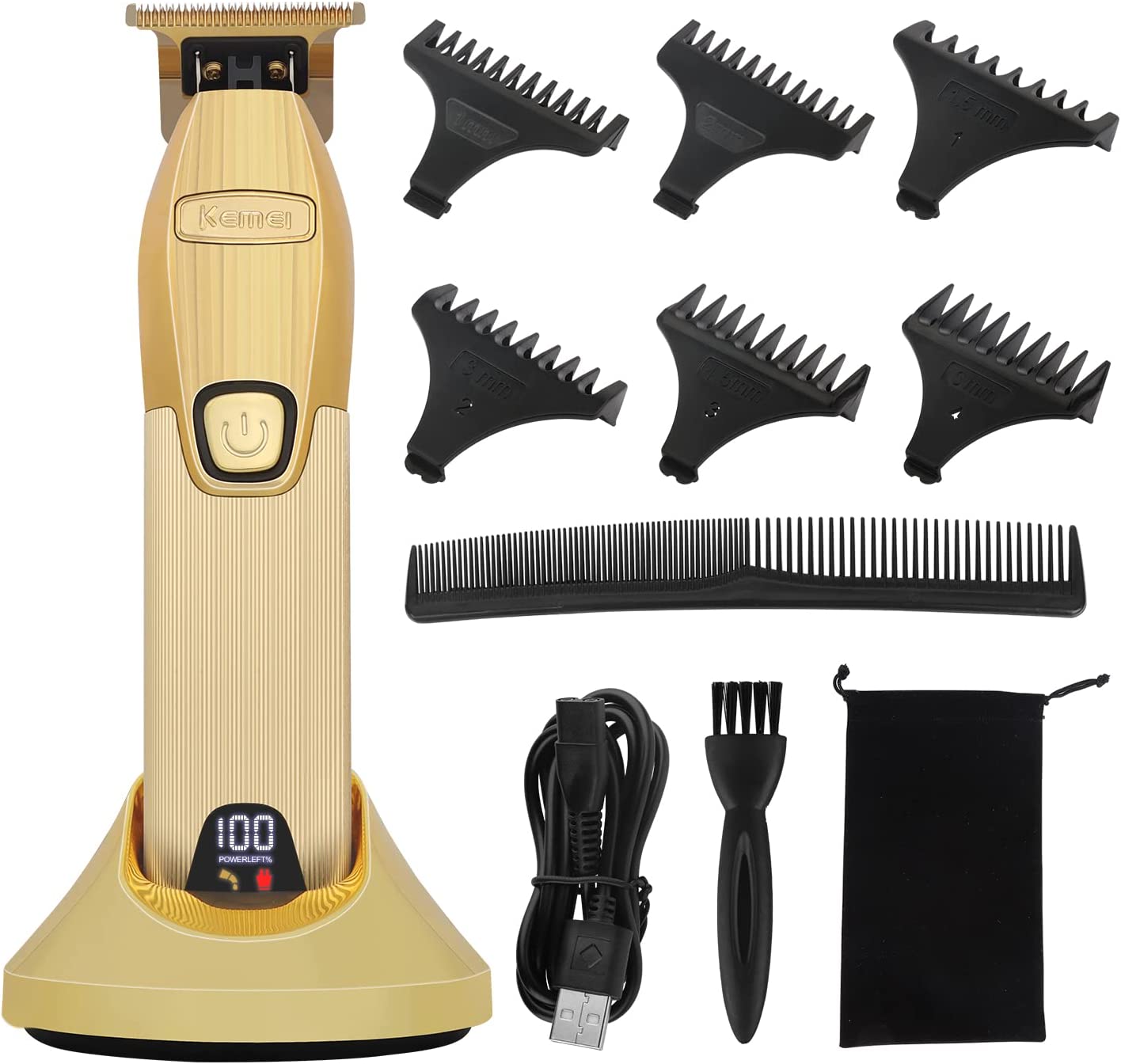 KEMEI Hair Clipper for Men Professional Hair Trimmer Barbers Beard Trimmer Cordless Rechargeable Hair Cutting Grooming Kit with 6 Guide Comb T Blade Trimmer LED Display