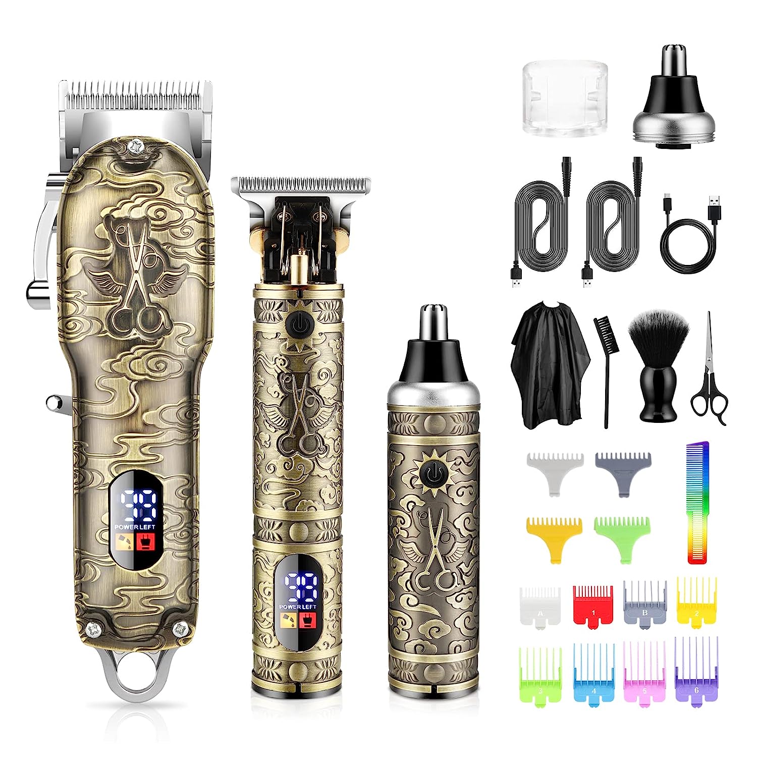 • 【Best Gift For a Loved One】This hair clippers set can be used to hair trimmer, beard trimmer, barber clippers, shavers for men, liners for men clippers, edgers clippers for men, and so on. And the clippers for hair cutting have mechanical beauty, which is a perfect gift choice for dads, husbands, boyfriends and male friends as a Birthday gift, Christmas gift, Valentine's Day gift.