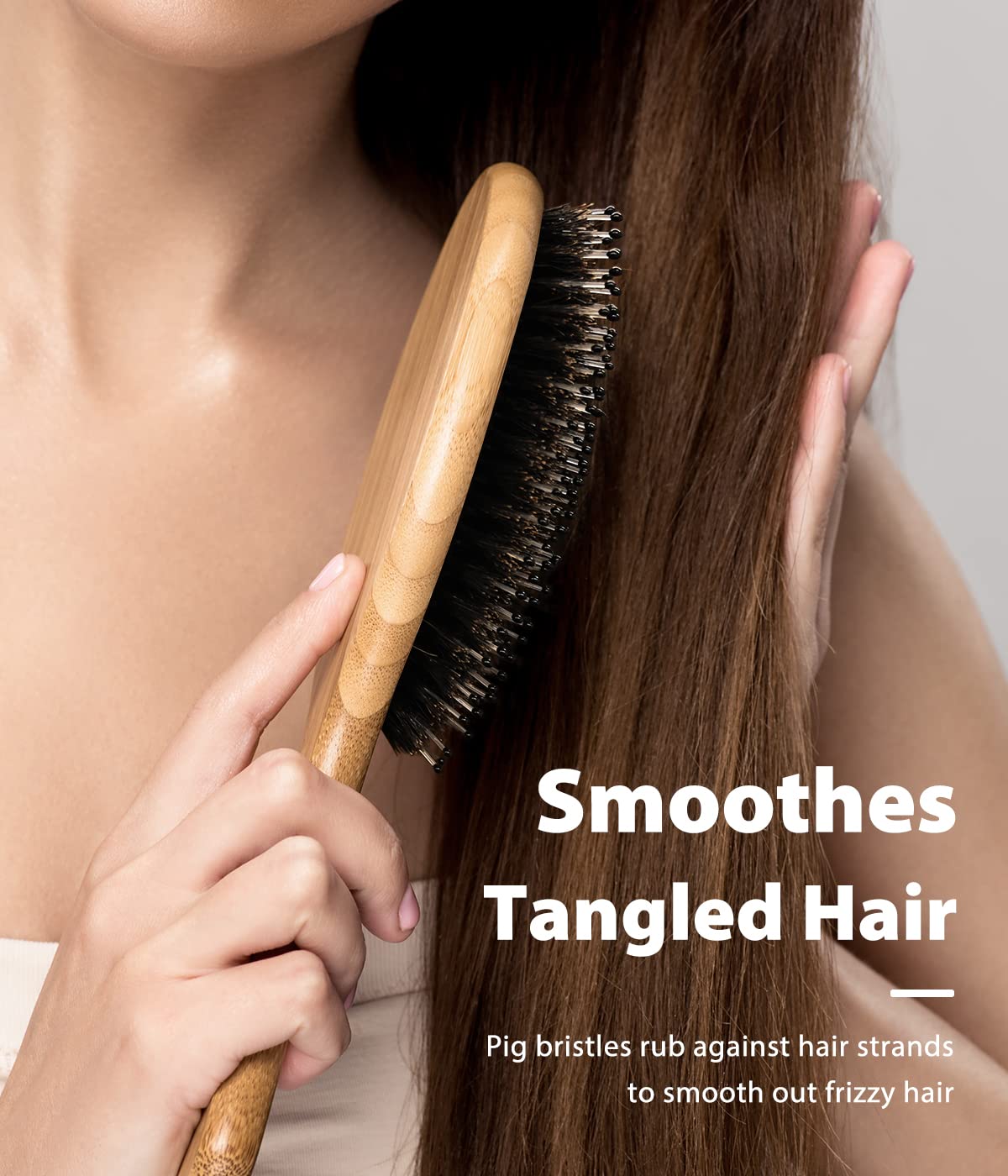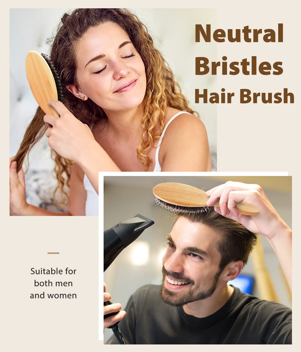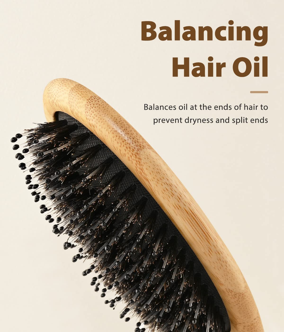 • NATURAL HAIR CONDITIONER - Boar bristle brush distributes scalp sebaceous oils throughout the whole hair. The scalp's own naturally-produced oil that keeps hair from drying out, it's the best natural hair conditioner.