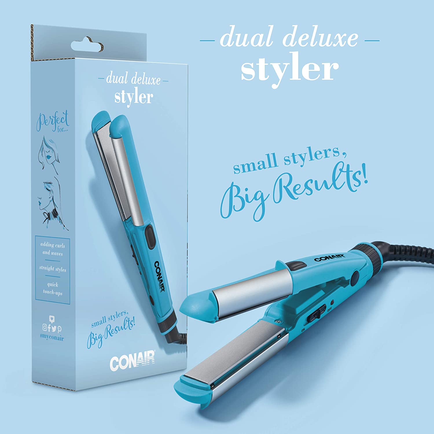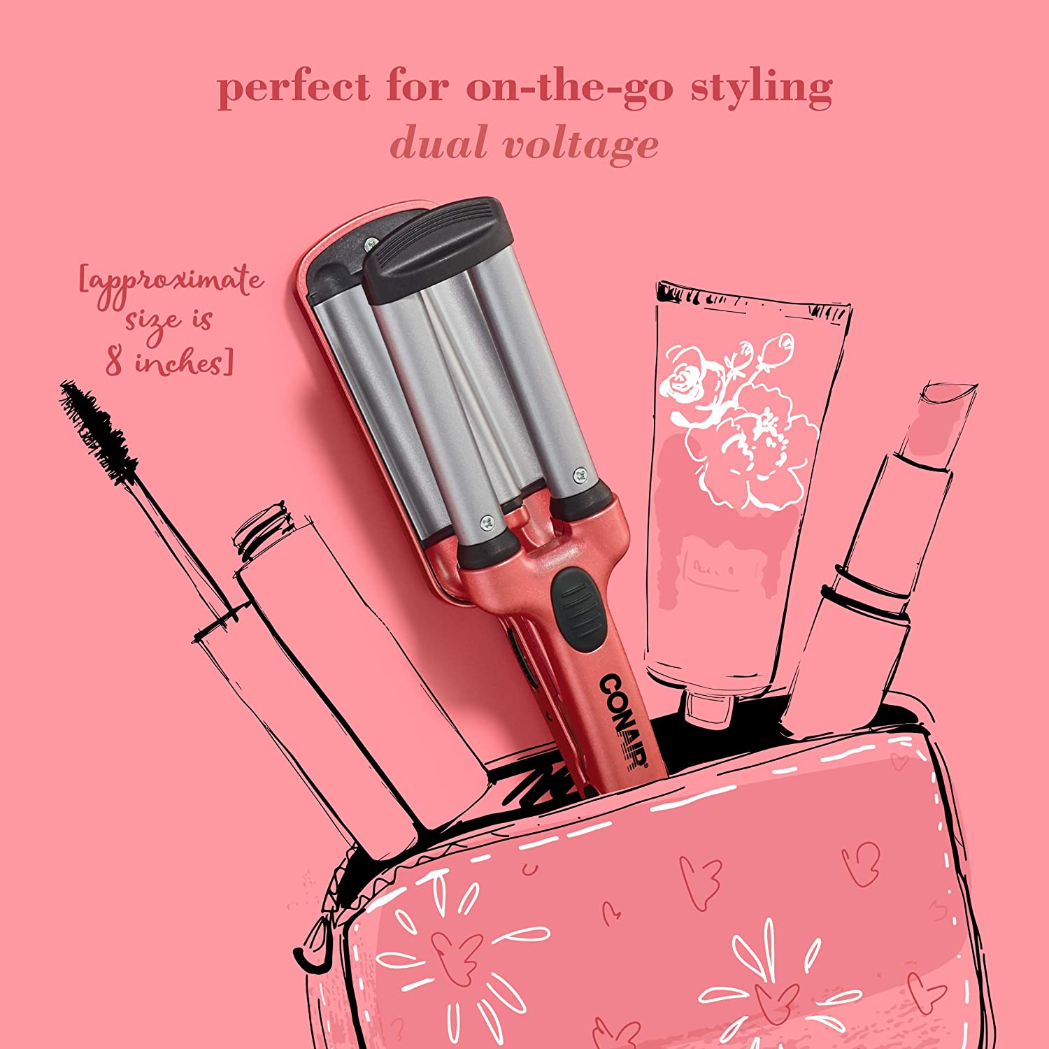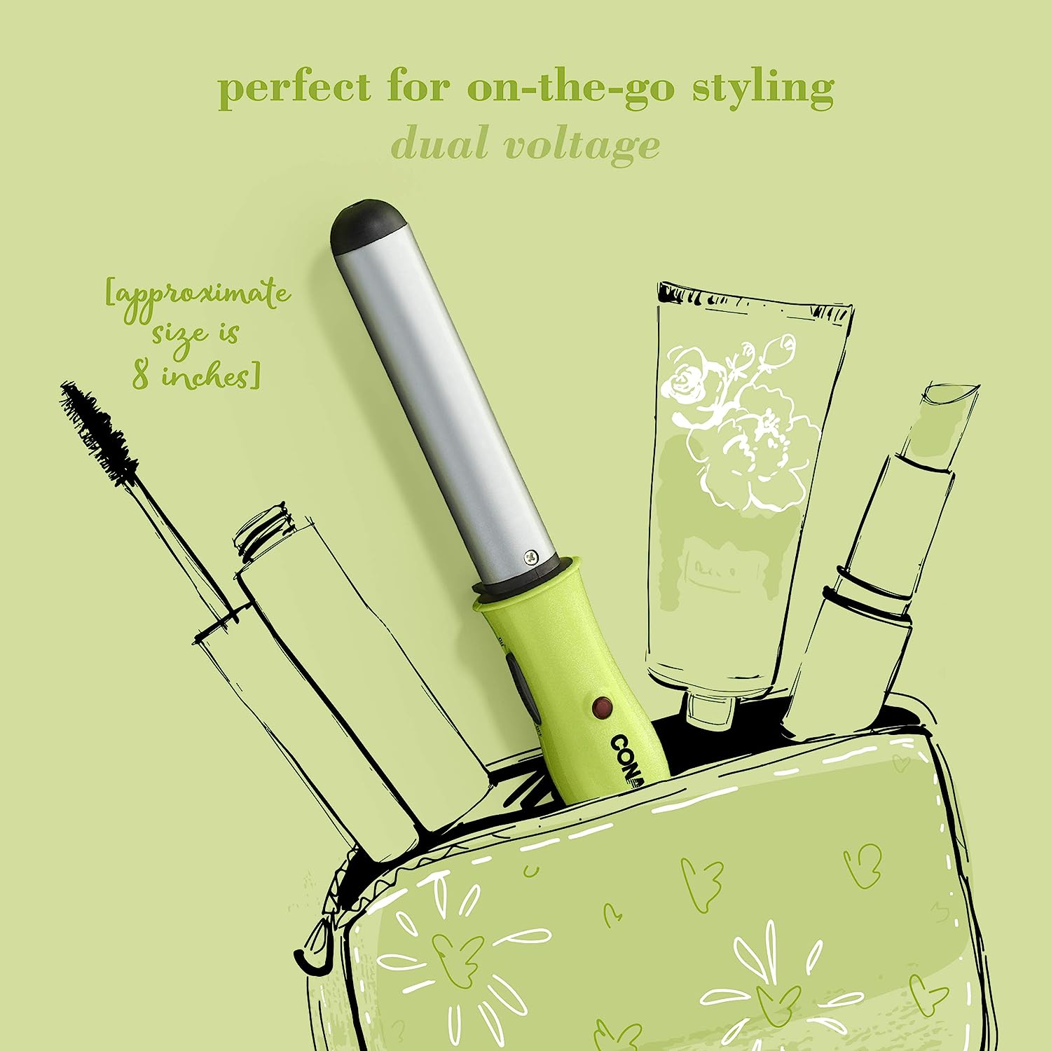 The Conair Instant Heat Compact Hot Rollers give you flawless curls on the go. This dual-voltage hot roller set includes 10 multi-size rollers (4 Small, 3 Medium and 3 Large) and clips for a variety of styles. It features a patented roller design that instantly grips hair for a fast and secure set and 90-second heat-up feature for instant results. The soft heat-resistant pouch makes it easy to carry in gym bag, backpack or suitcase.