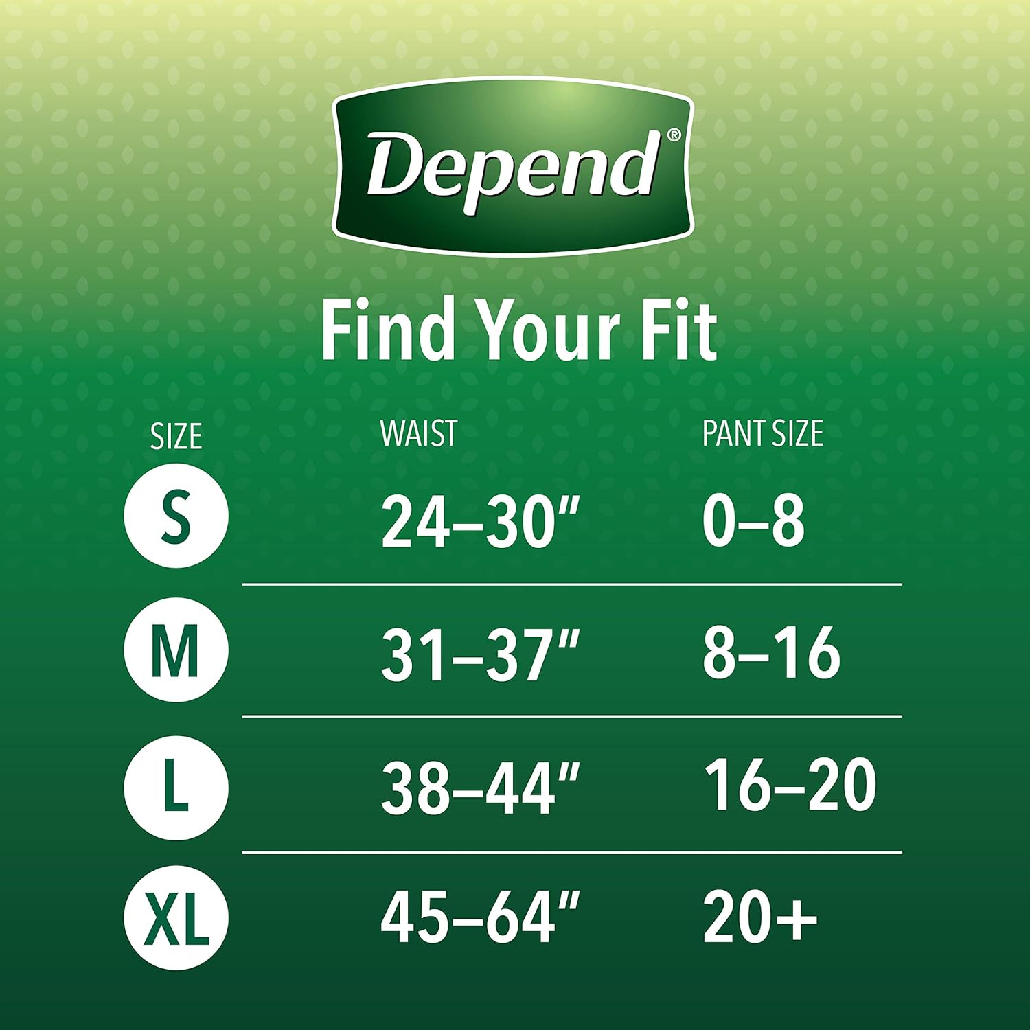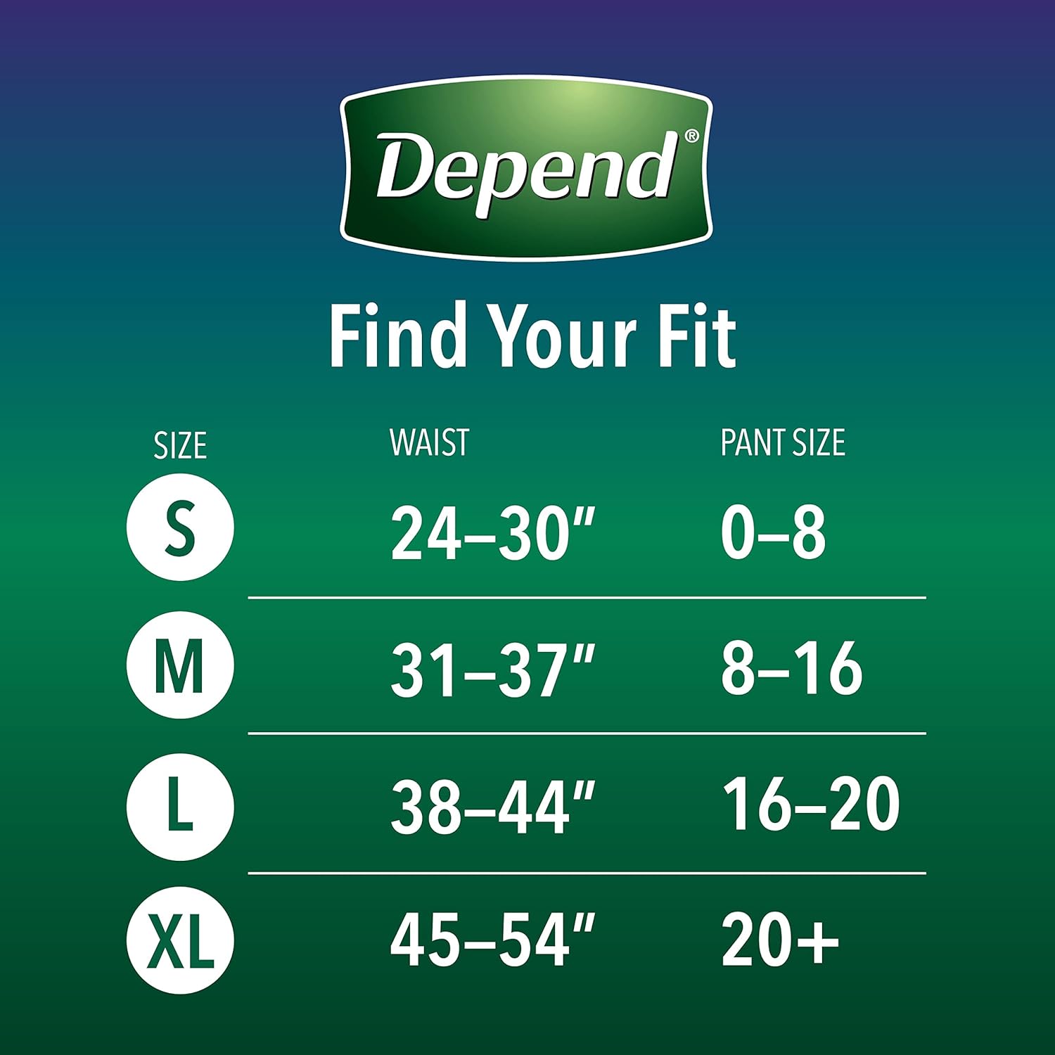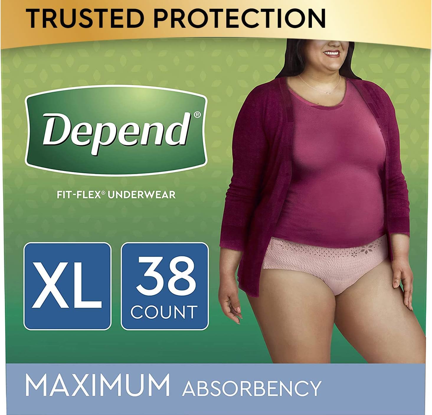 Sleep through the night with Depend Night Defense Women’s Incontinence Overnight Underwear with DryShield Technology, providing you all-night comfort, guaranteed.* Featuring a beautiful blush color and three feminine designs, this disposable underwear is ideal for bladder incontinence for nighttime use, with up to 12 hours of protection. Extremely soft, yet strong, material instantly locks in wetness and odors, helping to keep you dry and worry-free through the night. A comfortable, underwear-like fit – it is designed with the SureFit waistband to keep underwear in place and the form-fitting elastic strands provide a smooth, discreet fit under pajamas, unlike bulky overnight adult diapers. Absorbent protective underwear is soft, quiet and breathable. Depend Night Defense for Women with Overnight Absorbency is available in four sizes - size small (24-30” waist), size medium (31-37” waist), size large (38-44” waist) and size extra-large (45-54” waist). Depend adult incontinence supplies always ship in a discreet box and are FSA/HSA-eligible in the U.S. Packaging may vary from images shown. *If you're not completely satisfied with the fit of your Depend Underwear, we can help. Original receipt/UPC required. Restrictions apply. See Depend website for details. Purchase by 12/31/24. Mail in by 1/31/25.**vs. the leading bargain brand
