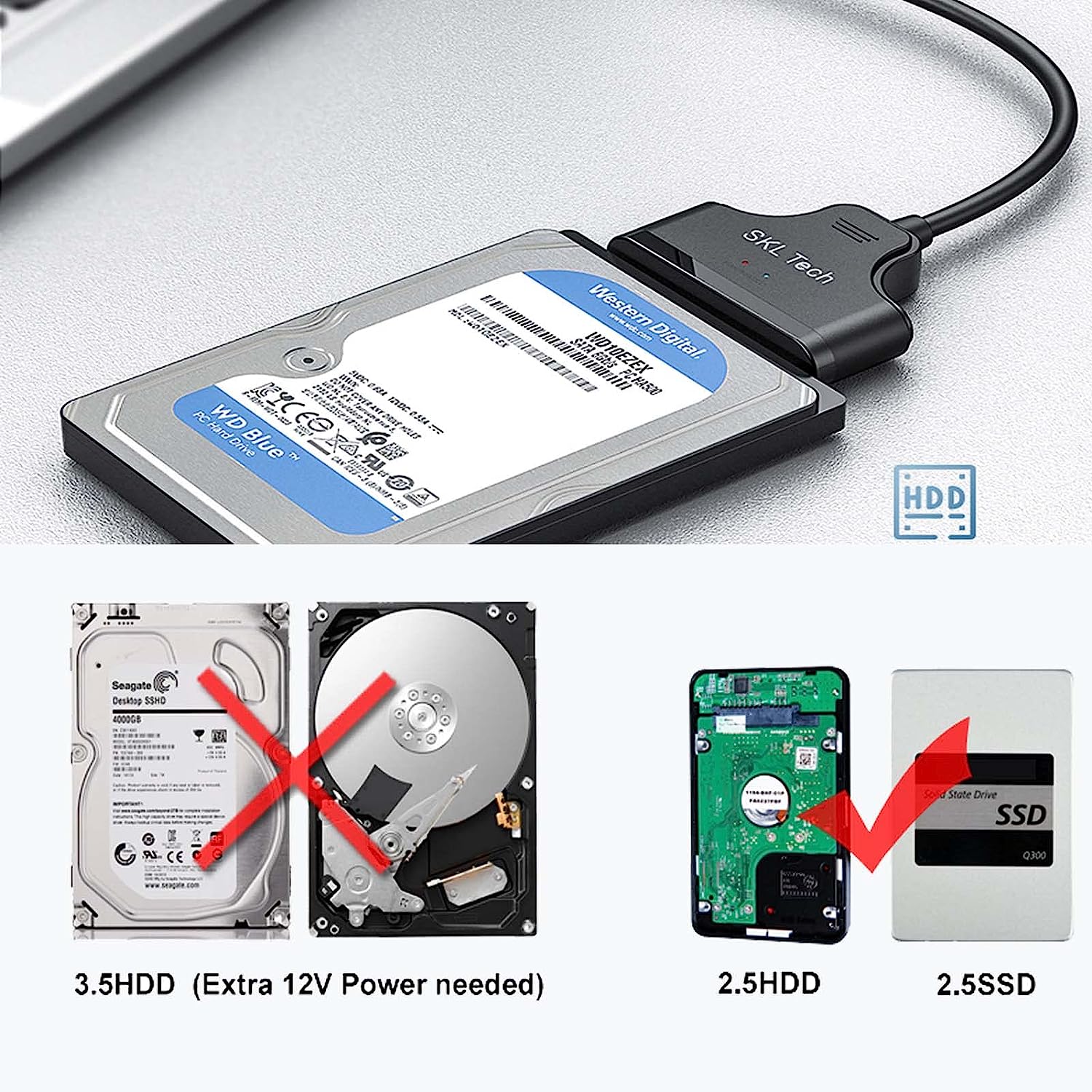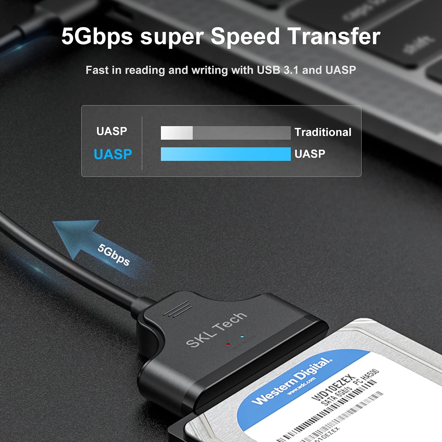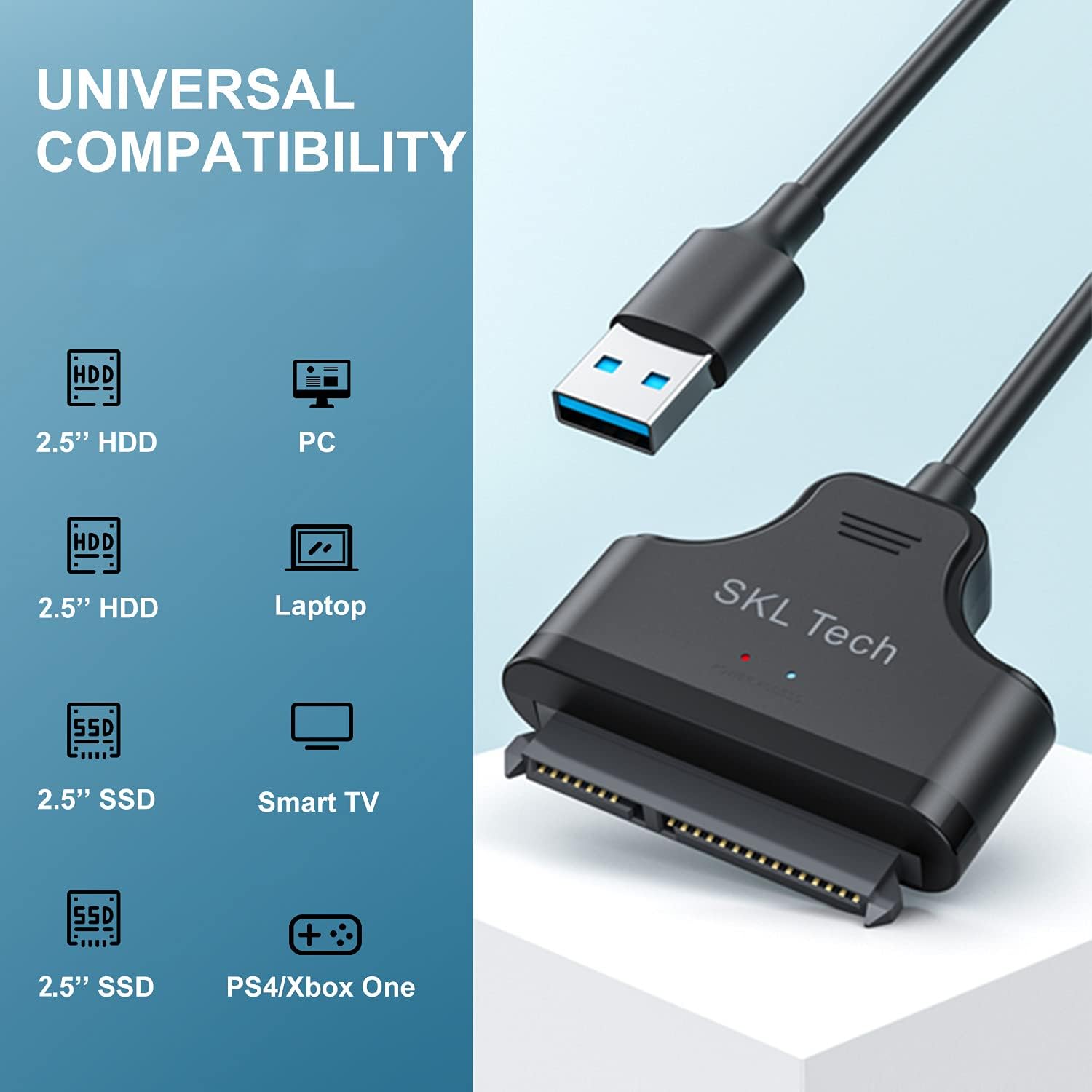 SKL Tech USB 3.0 SATA III Hard Drive Adapter Cable, SATA to USB Adapter Cable for 2.5 inch SSD & HDD, Support UASP, 9 inch, Black…