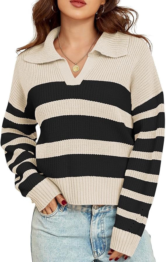 ZAFUL Women's 2024 Fall Long Sleeve Cute Striped Sweater Winter Pullover Knit Sweater Tops Trendy