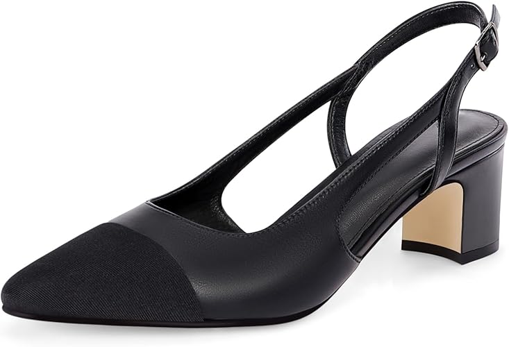 Coutgo Womens Slingback Kitten Heels Low Chunky Heel Splicing Toe Office Wedding Dress Pumps Shoes