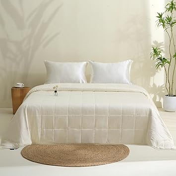 EP Mode Lightweight Quilt Blanket for Summer, 100% Viscose from Bamboo Fabric & Filling, Natural, Breathable- Ivory, Twin