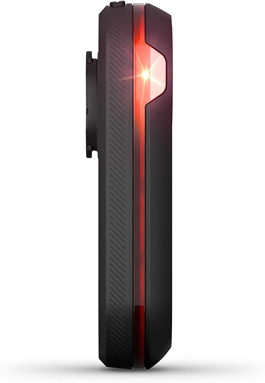 See and be seen with Varia RTL515 rearview radar with tail light. It pairs with your Edge bike computer, other Garmin device or compatible smartphone to alert you of vehicles approaching from behind up to 153 yards (140 meters) away. When used with your compatible smartphone, the Varia app helps increase your awareness with vibration alerts and more. With daylight visibility up to 1 mile, motorists will be able to see you from a distance. The radar’s compact vertical design allows for device mounting on most road-use bicycles. And peloton mode provides a low-intensity flash that is kind to other riders’ eyes when riding in a group.