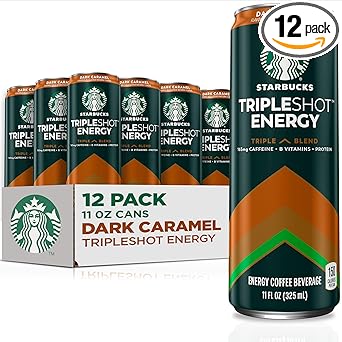 Starbucks Tripleshot Coffee Energy Drink, Dark Caramel, 11 fl oz Cans (12 Pack), Triple Blend, 165mg Caffeine, B Vitamins, Protein, Iced Coffee