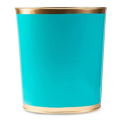 Jaye's Studio Mattie Line, Oval Wastebasket & Garbage Bin, Gold Trim & Finish, Hand-Painted, Handcrafted Metal, Trash Bin for Bedroom, Office, Bathroom, 12" x 10 x 8 (Matte Turquoise)