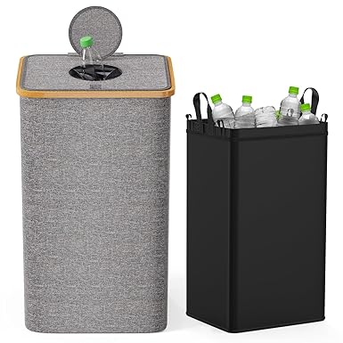 Recycling Bin, 100L Recycling Bin for Kitchen Indoor Home, Bottle Recycle 26Gallon Large Capacity With Removable Tote Bag, Collecting Glass Paper Plastic Metal Empty Bottles, Recycle Bin Zip-Top Can