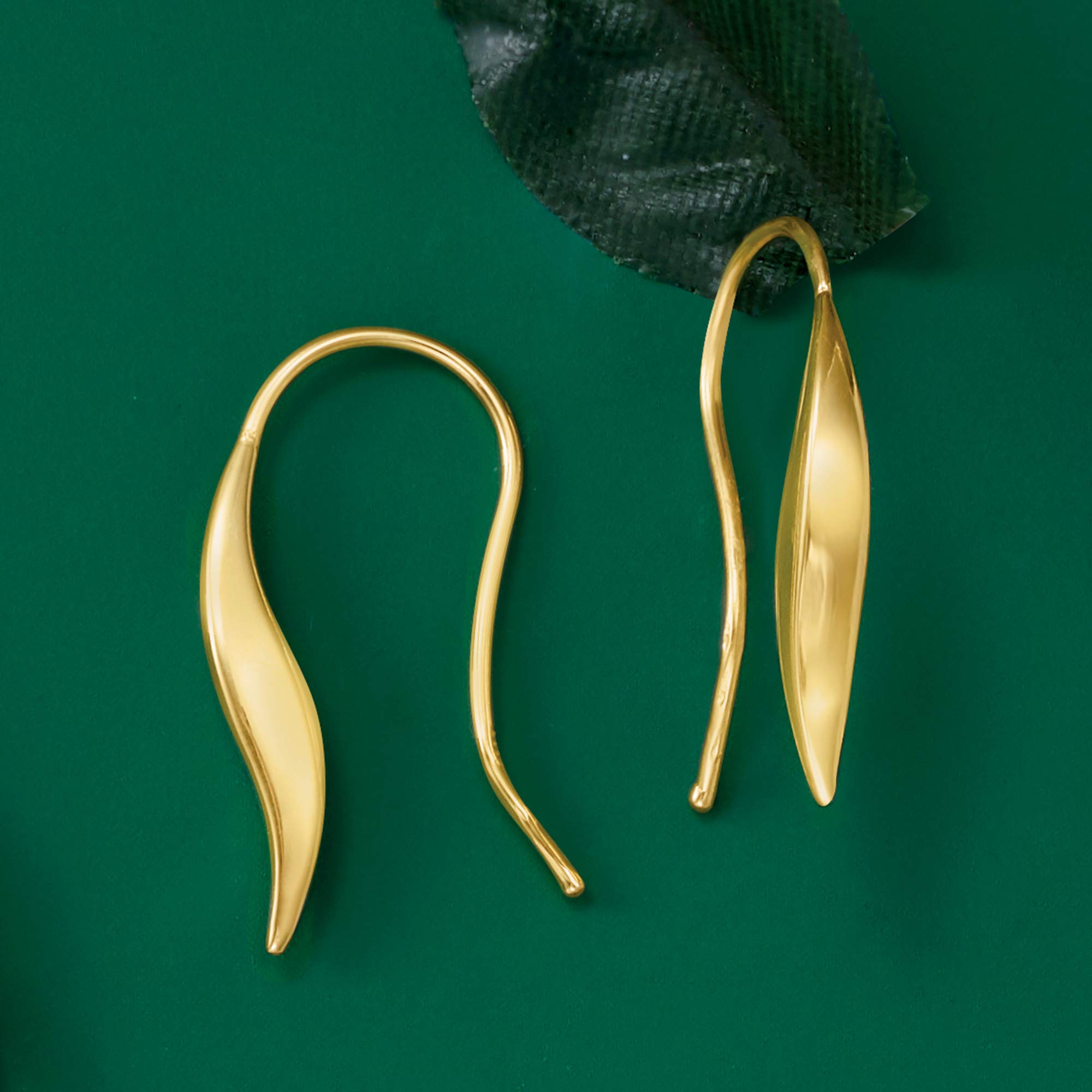 Details: With a commitment to quality and affordability, Ross-Simons presents timeless jewelry for the modern woman. Curvy and cool, these drop earrings are calling out to you! Crafted in Italy, these polished 14kt yellow gold earrings feature curved drops that give off a sophisticated and elegant air. Hanging length is 7/8". Earwire, 14kt yellow gold drop earrings. Each Ross-Simons item arrives in a fine jewelry presentation box. Shop Ross-Simons jewelry risk-free as all items include a 30-day, 100% money-back guarantee.