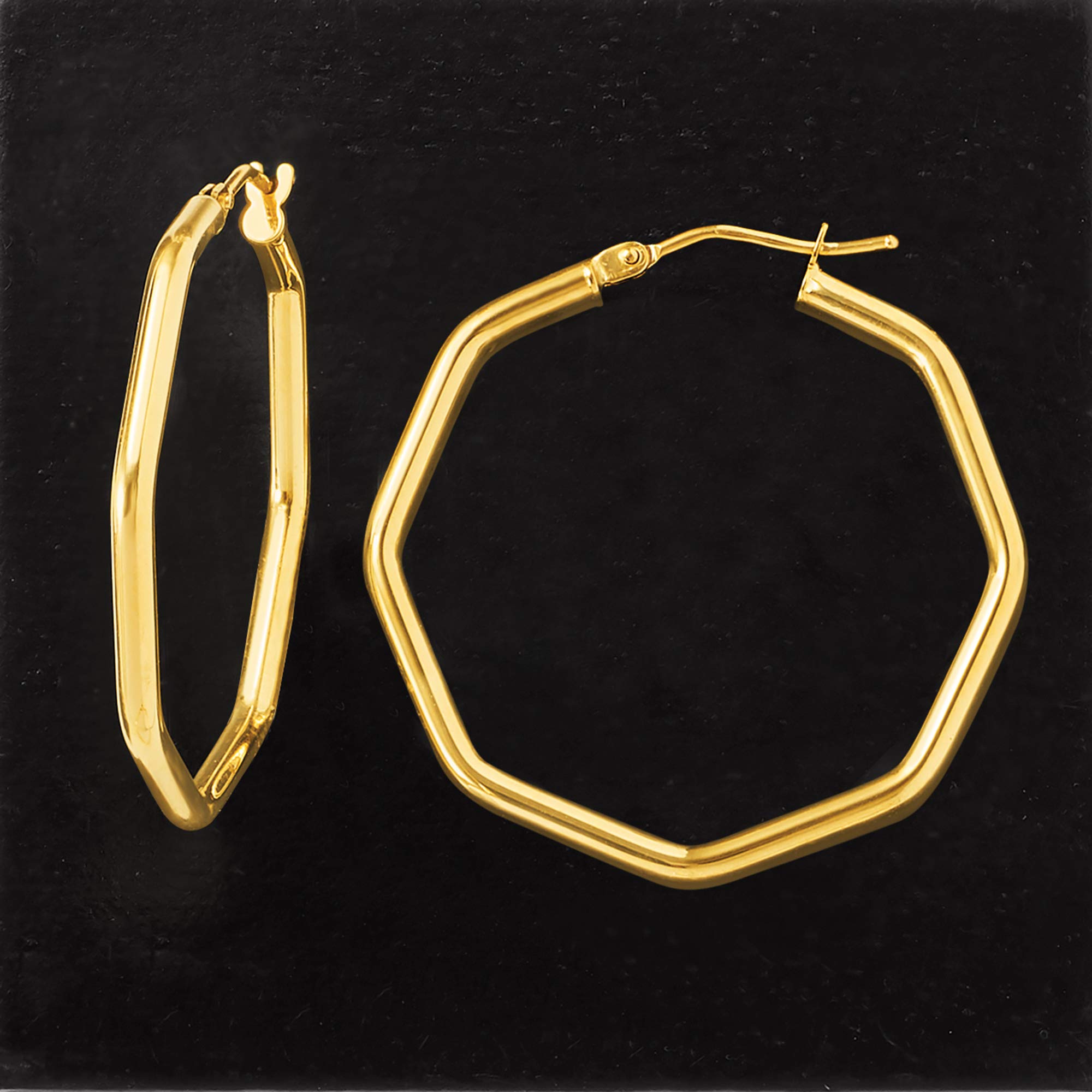 Details: Established in 1952, Ross-Simons brings jewelry classics into the modern era. Classic hoops go geometric! Crafted in polished 14kt yellow gold. Made in Italy. Hanging length is 1 1/4". Snap-bar, 14kt yellow gold hoop earrings. Each Ross-Simons item arrives in a fine jewelry presentation box. Shop Ross-Simons jewelry risk-free as all items include a 30-day, 100% money-back guarantee.