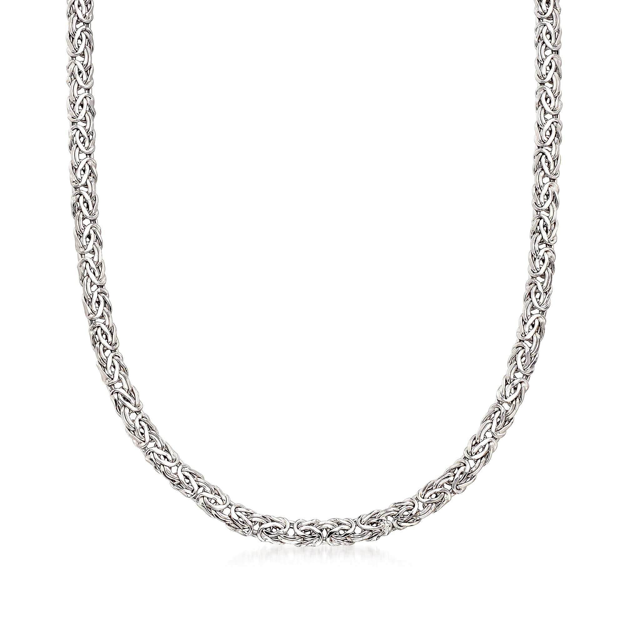 Details: Established in 1952, Ross-Simons brings jewelry classics into the modern era. Inspired by the intricate artwork of the Byzantine Empire, this namesake pattern has become a staple in modern luxury. This skillfully handcrafted necklace is a jewelry box essential, featuring flat Byzantine links of 14kt white gold. 3/16" wide. Lobster clasp, 14kt white gold Byzantine necklace. Each Ross-Simons item arrives in a fine jewelry presentation box.
