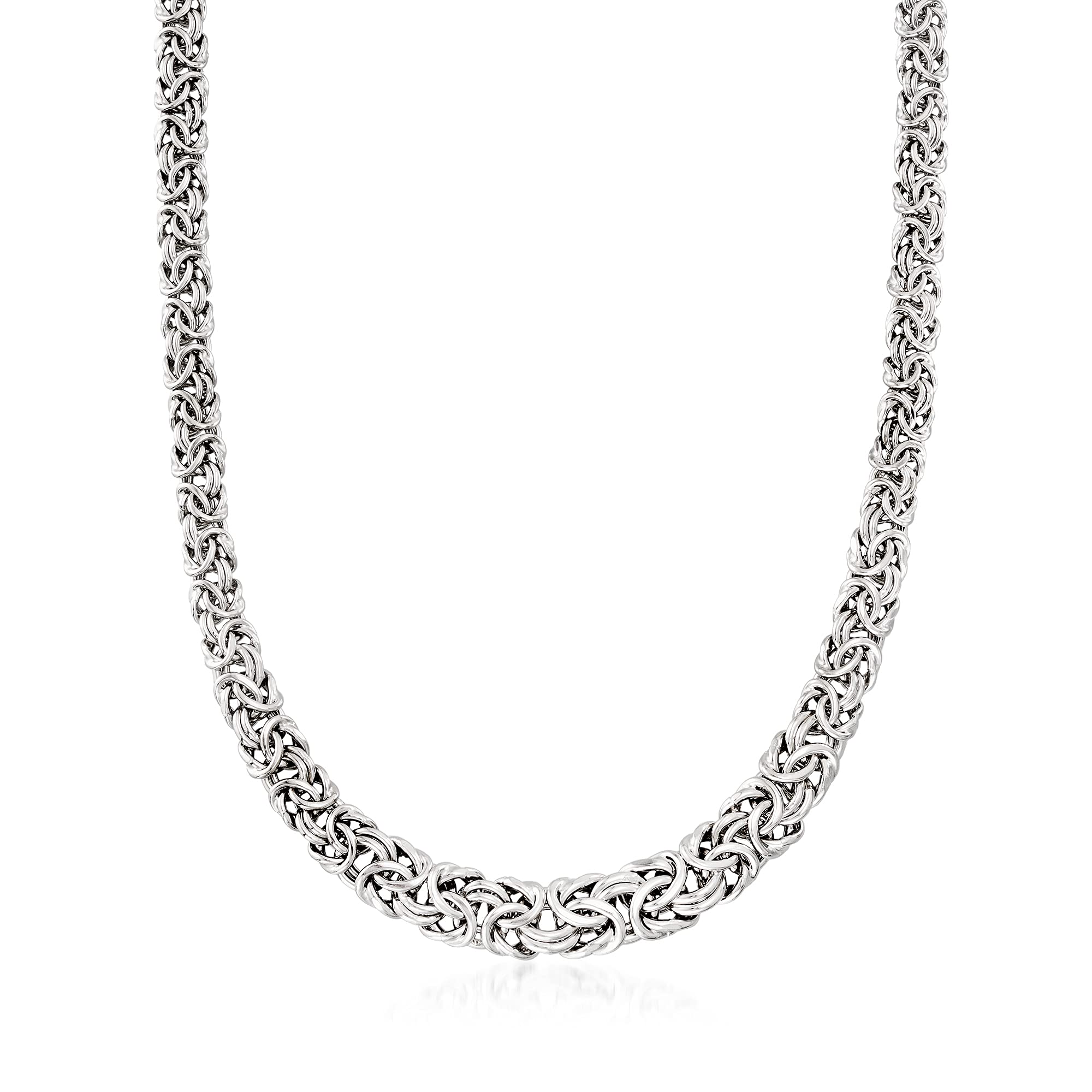 Details: Ross-Simons travels the world to find beautiful, high-quality styles at the best prices. Italian silversmiths craft this Byzantine necklace with a timeless sophistication. Graduates from 3/8" to 1/2". Lobster clasp, sterling silver Byzantine necklace. Each Ross-Simons item arrives in a fine jewelry presentation box.
