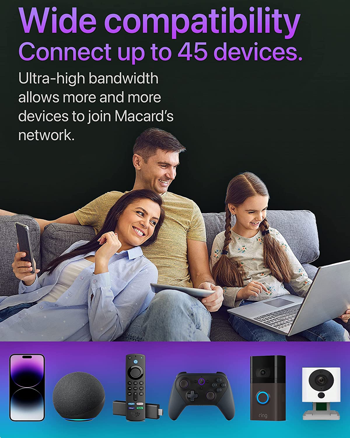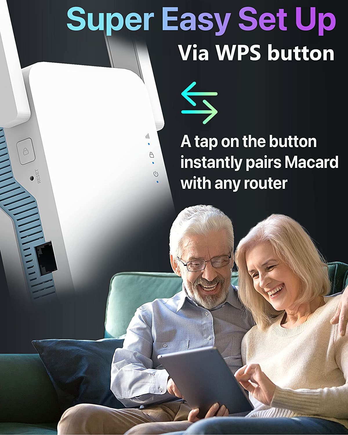 • Macard WiFi Extender signal range booster eliminate Wi-Fi dead spots, pumping out interference-free, lightning-fast data capabilities to all smartphones, smart speakers, IoT and Alexa devices, Blink, Ring, IP cameras, ROKU, FIRE TV Stick, PS5, and whatever WIFI supporting device the interwebs invents next.