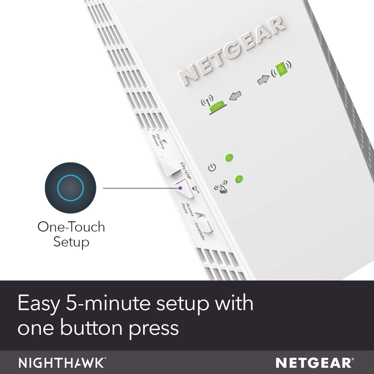Extend your existing Wi-Fi with Nighthawk X4 AC2200 Wi-Fi Mesh Extender, and get the speeds that you pay for throughout your home. This Mesh Extender improves coverage and works with your home Wi-Fi to create a powerful Wi-Fi System. Includes Mesh features like Smart Roaming and One Wi-Fi Name. Easily connect all your smart home devices to one network, no new Wi-Fi names and passwords needed. Move from room-to-room while streaming video on your mobile device without any interruptions. Other powerful features like MU-MIMO and Smart Connect ensure every device is assigned the fastest available Wi-Fi connection. Easy setup with a touch of a button. Boost your Wi-Fi to the extreme with this Nighthawk X4 Wall-plug Wi-Fi Mesh Extender. Works with your existing Wi-Fi router, gateway, or ISP provided gateway. Note: Firmware upgrade & factory reset required to unlock Mesh Wi-Fi features.