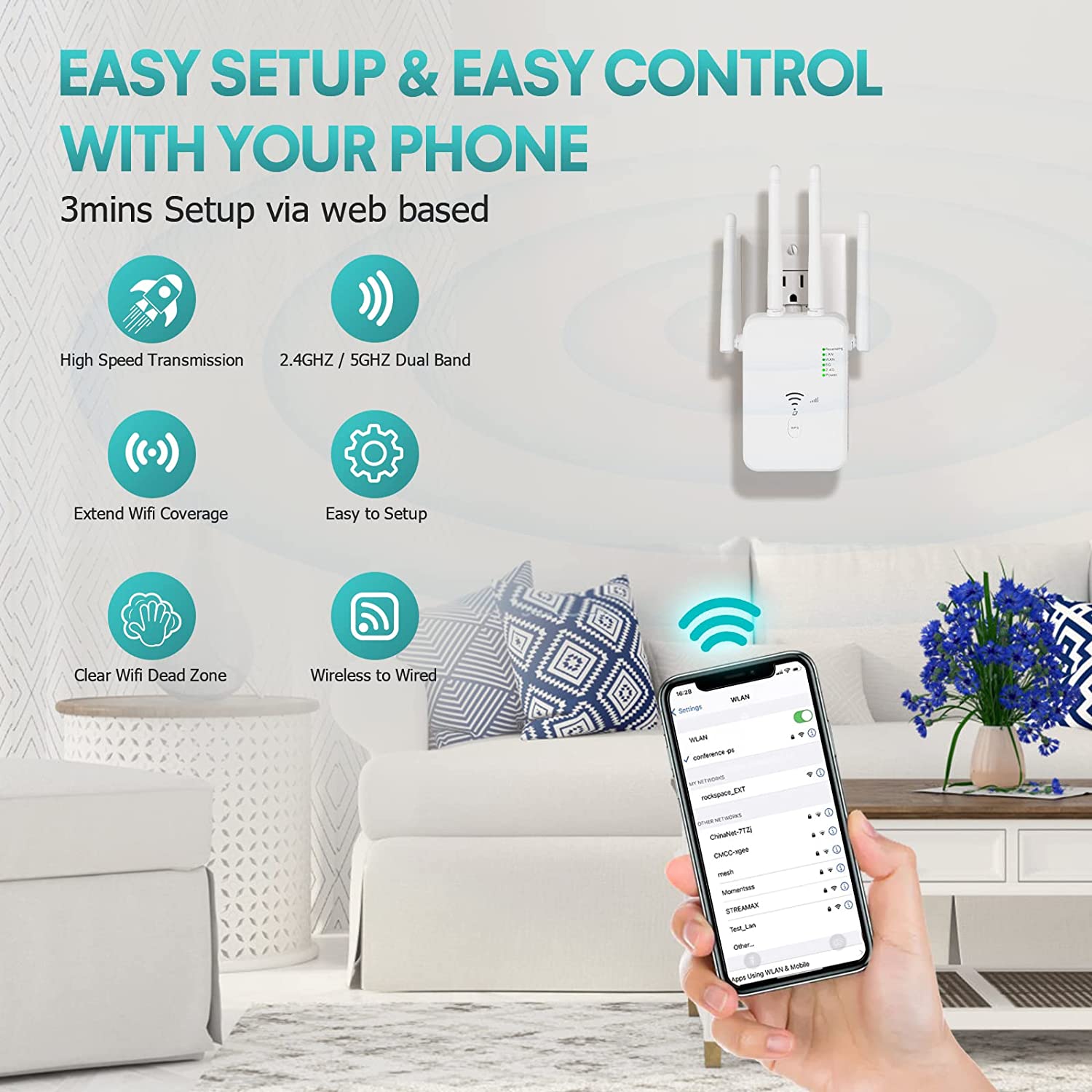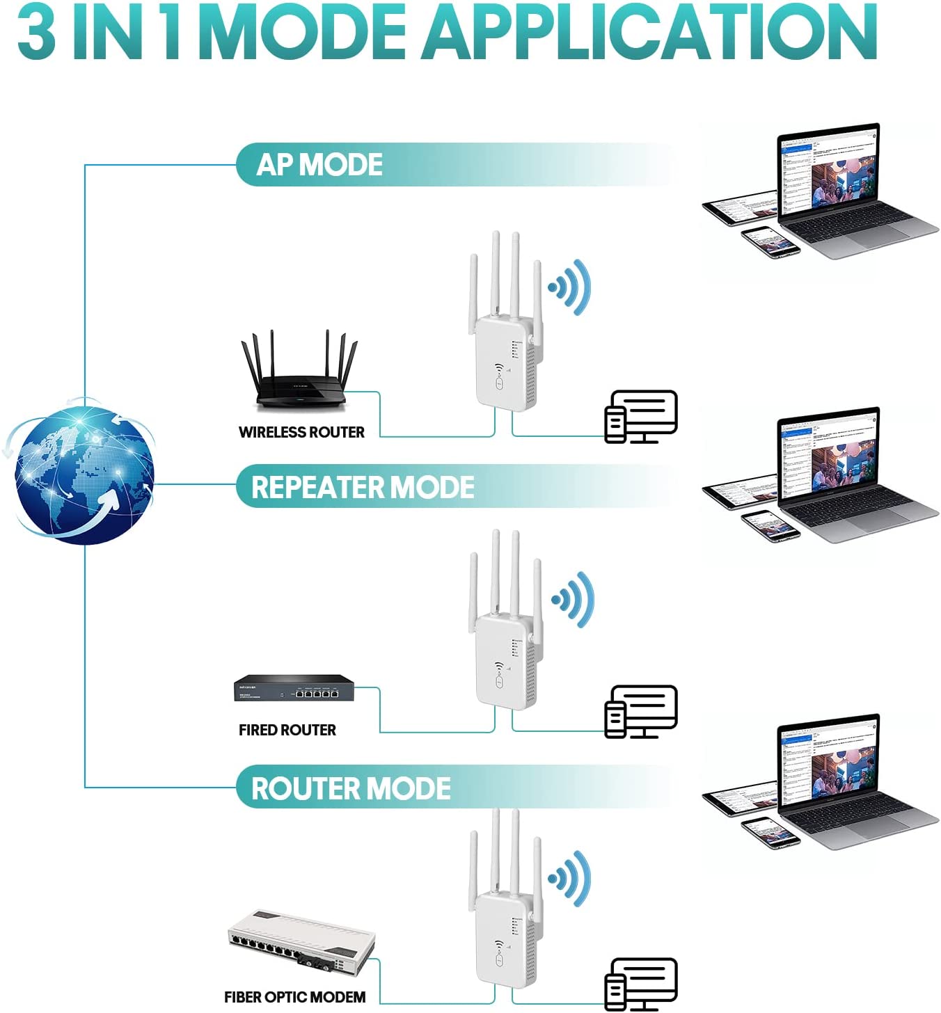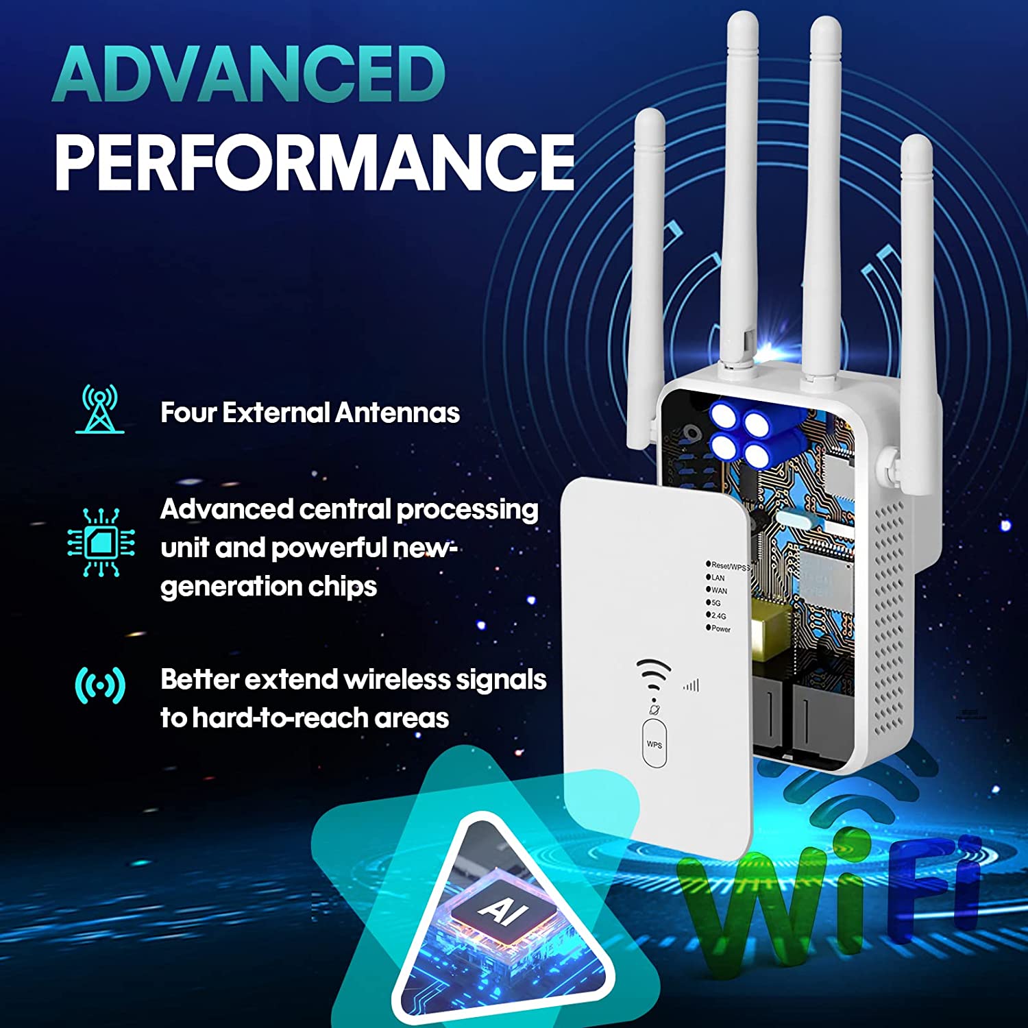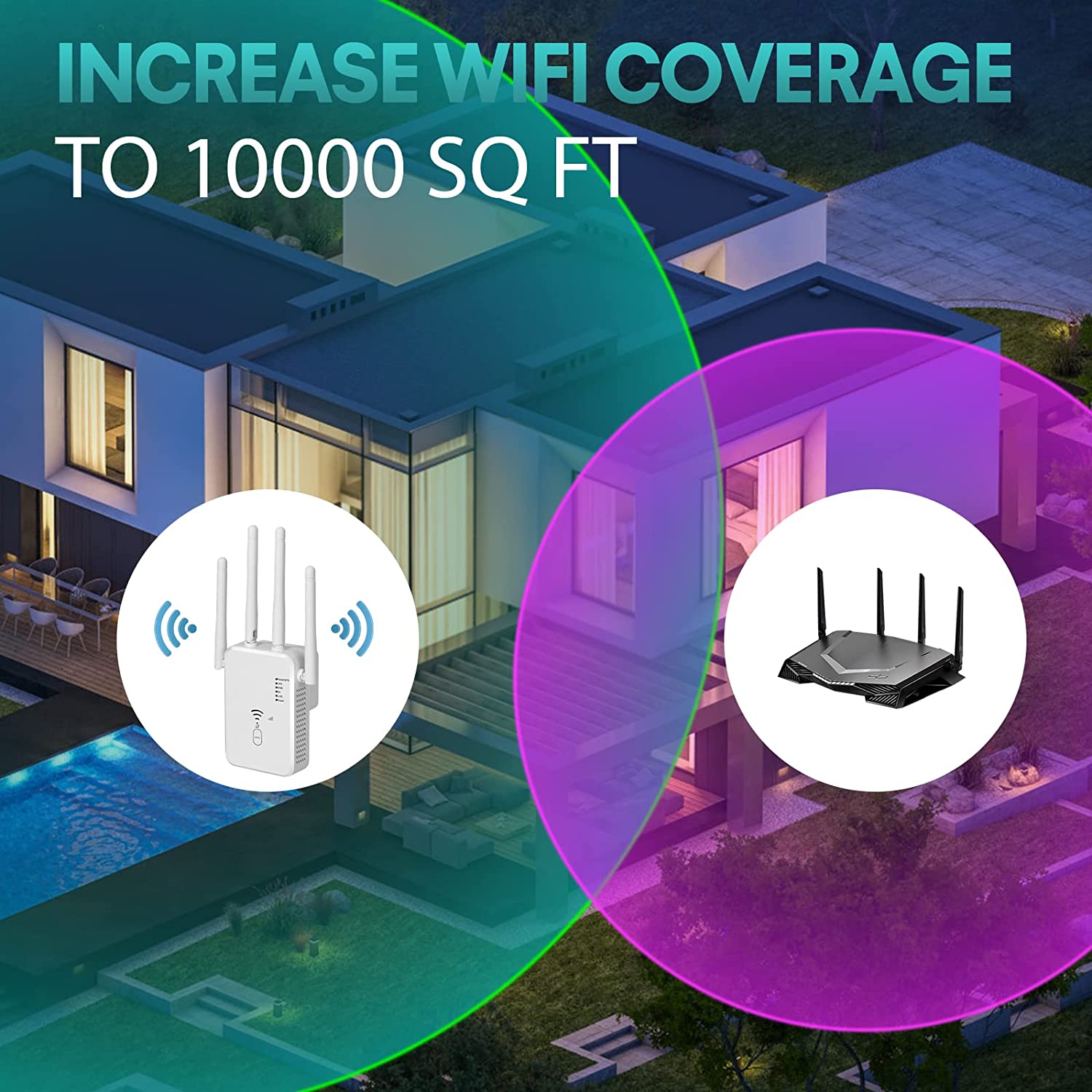 WiFi Extender 1200Mbps, WiFi Extenders Signal Booster for Home, WiFi Range Extender Signal Booster up to 10000sq.ft, WiFi Booster, WiFi Extender Outdoor, Internet Booster, Internet Extender