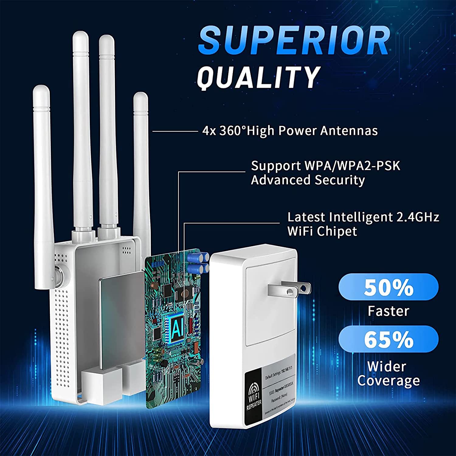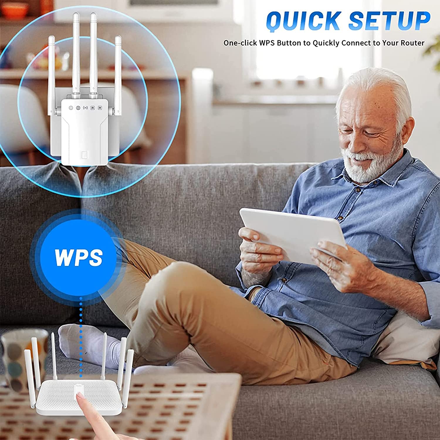 • 📶【WPS One-Tap Setup】Just plug the WiFi extender into the socket, then press the WPS button on both the WiFi extender and the router to set up pairing and instantly expand your network coverage.