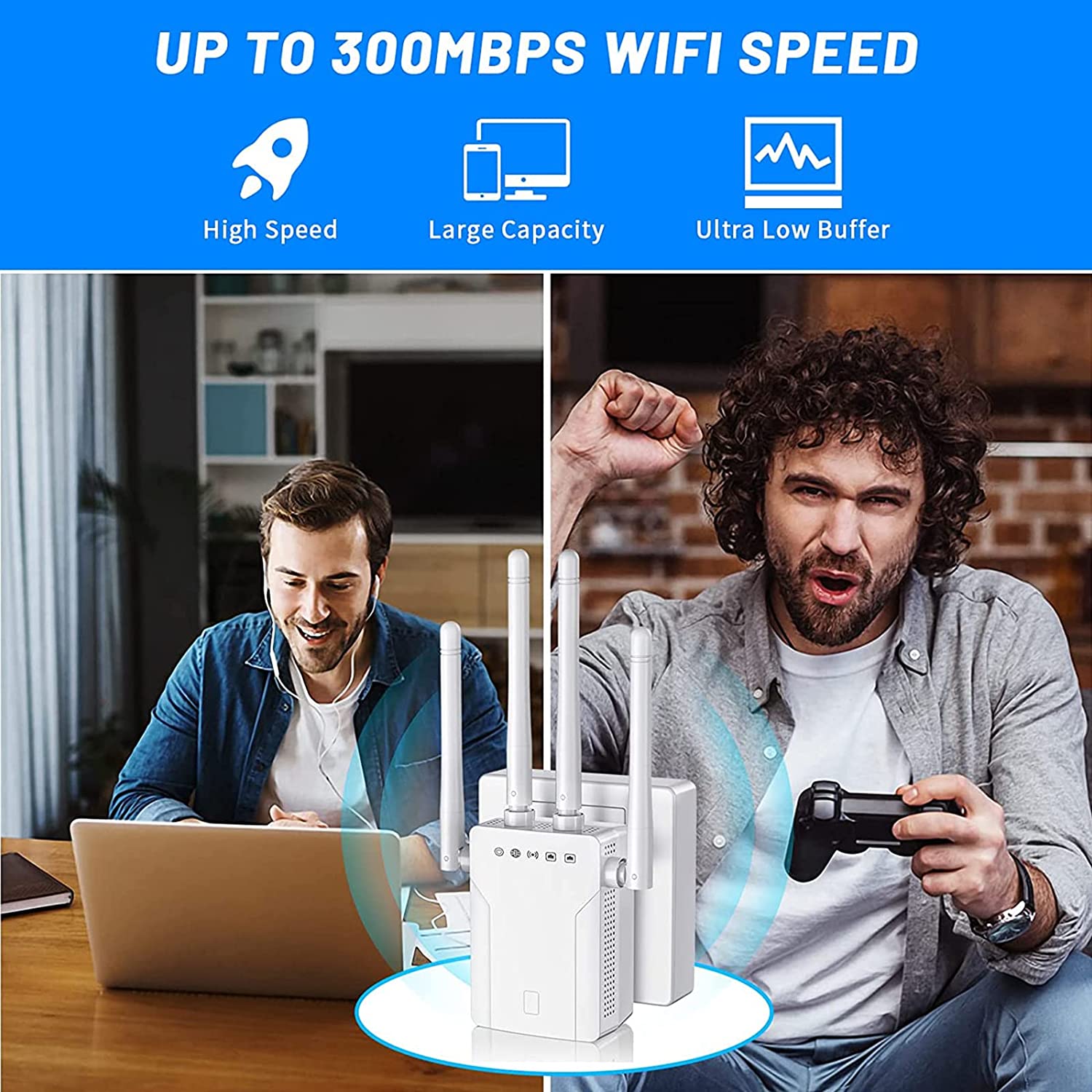 • 📶【High Speed WiFi Extender】The internet booster provides 300Mbps fast wireless transfer speed on 2.4GHz band, Expand Wi-Fi Coverage for your Smart Phones, Smart TV, Fire Stick, Google Chromecast, Web Browsing, Alexa Echo, Ring, FIRE TV Stick, PS5 and more