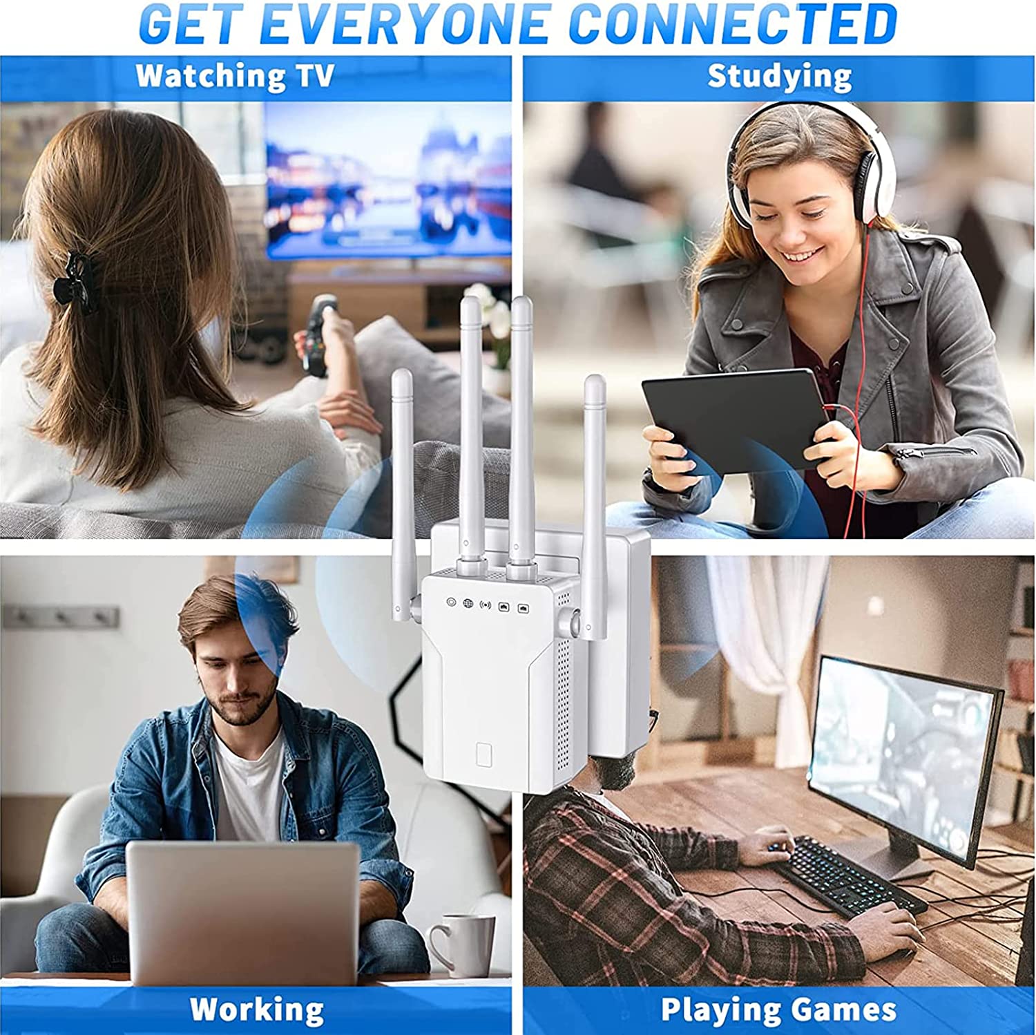 • 📶【Compatible with 99% Routers】The WiFi extender complies with the IEEE 802.11b/g/n standard protocol and is compatible with 99% of wireless network devices, routers and WiFi devices