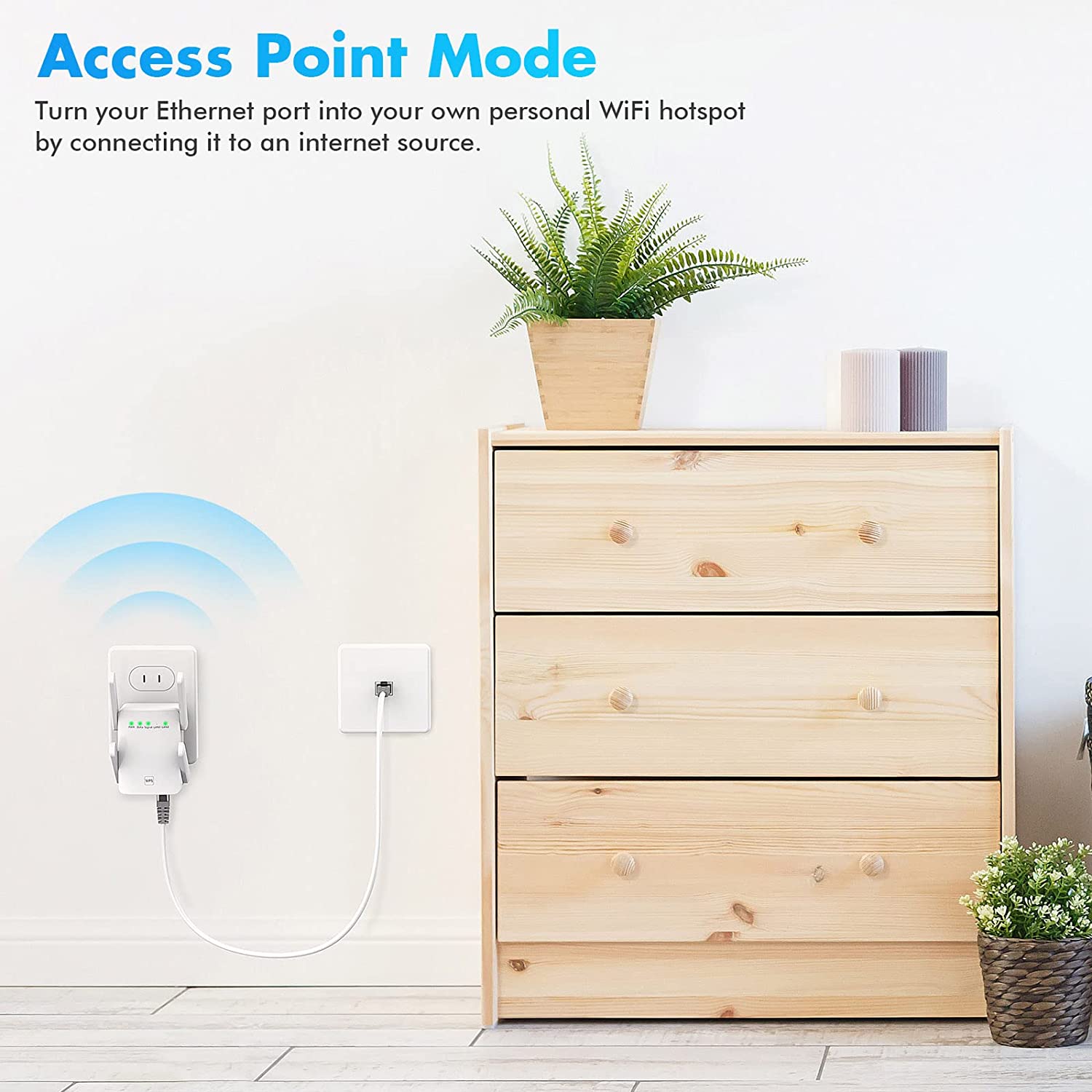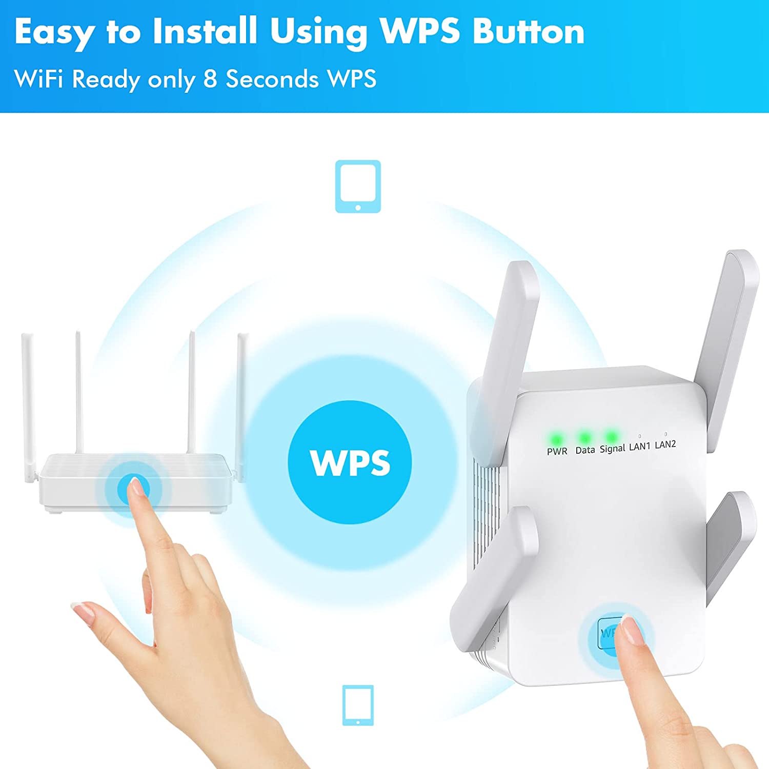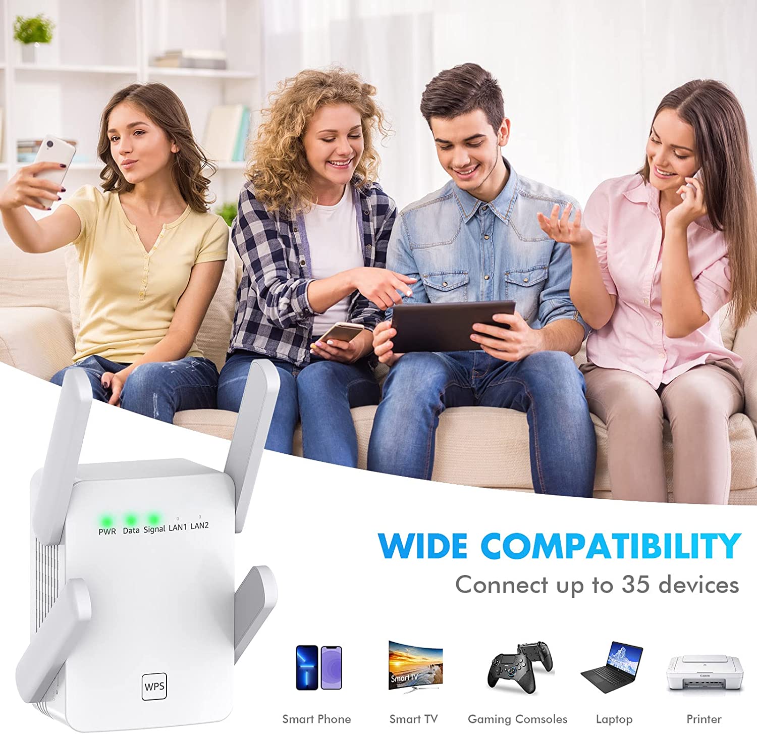 • Universal Compatibility--Internet Range Extender compatible with 99% wifi routers on the market and the wifi extender works with all standard routers or gateway, Easily connect to all the latest routers to extend your WiFi signal range and the wifi repeater wireless signal booster provide interference-free, lightning-fast data capabilities for All Smartphones, Smart Speakers, Cameras, Doorbells, Alexa Compatible Devices, and more. Combat frustrating Wi-Fi dead zones with superior performance.