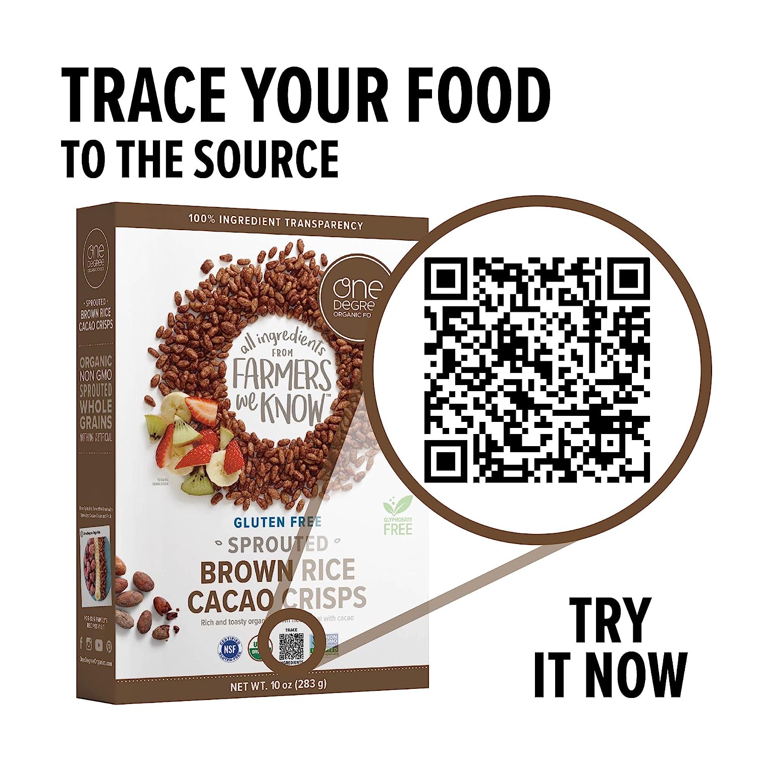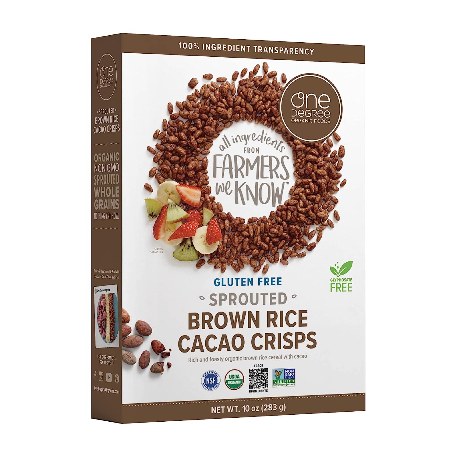 One Degree Organic Foods Sprouted Brown Rice Cacao Crisps, USDA Organic, Non-GMO Gluten Free Chocolate Cereal, 10 oz, 6 pack