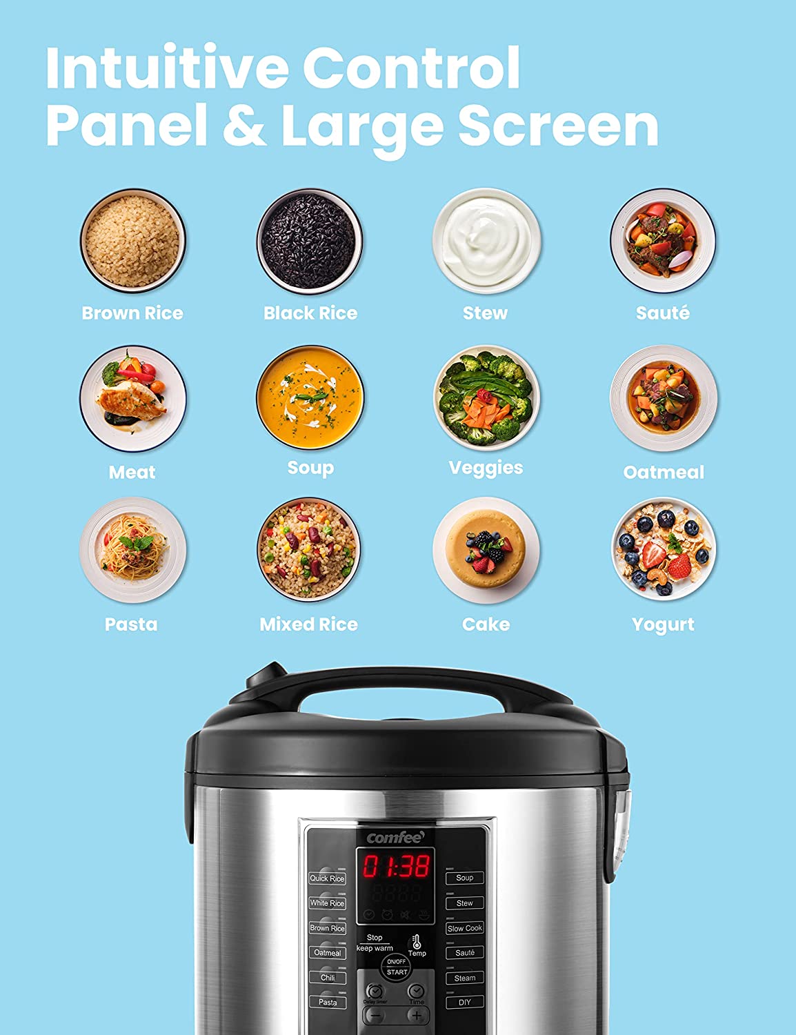 Slow cook don't want to cook after a long day? Prep your meal in the morning, Set cooking time from 30 minutes to 12 hours, and then let dinner cook itself. Choose from high, low, or warm cook settings. Pressure cooking a hurry? Choose from 8 meal options and serve up delicious home-cooked meals in a fraction of the time that traditional cooking meals with less fat and more nutrition. Insert the steaming rack onto the cooking pot to prepare vegetables, fish, or whenever you want to prepare something light and delicious. Brown & saute use this setting as the first step during your meal prep: sear roasts to lock in juices or brown meats for stews and chilies. You can also cook tender sauteed dinners with adjustable high and low temperature settings. Quickly cook meats, stews, poultry, chili, rice, desserts, and more. Before you program the full meal, you can also steam, Brown, and saute. The convenient digital display shows the cooking time, indicator lights, and buttons to adjust time, temperature. Easy cleanup on-Stick cooking pot is dishwasher safe for easy cleanup. And the convenient lid holder helps keep your countertop mess-free.
