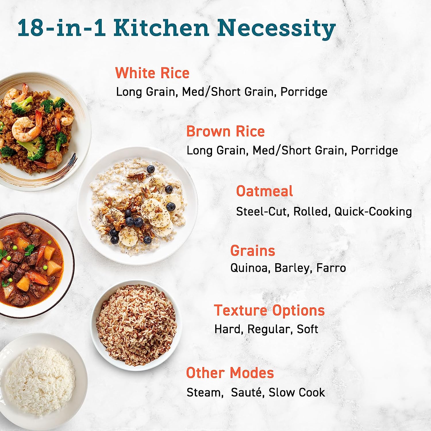 Choose from long grain rice like Jasmine rice, medium or short grain rice like sushi or sweet rice, and porridge like congee. You can also customize the textures of your white rice by choosing between soft, regular, and hard.