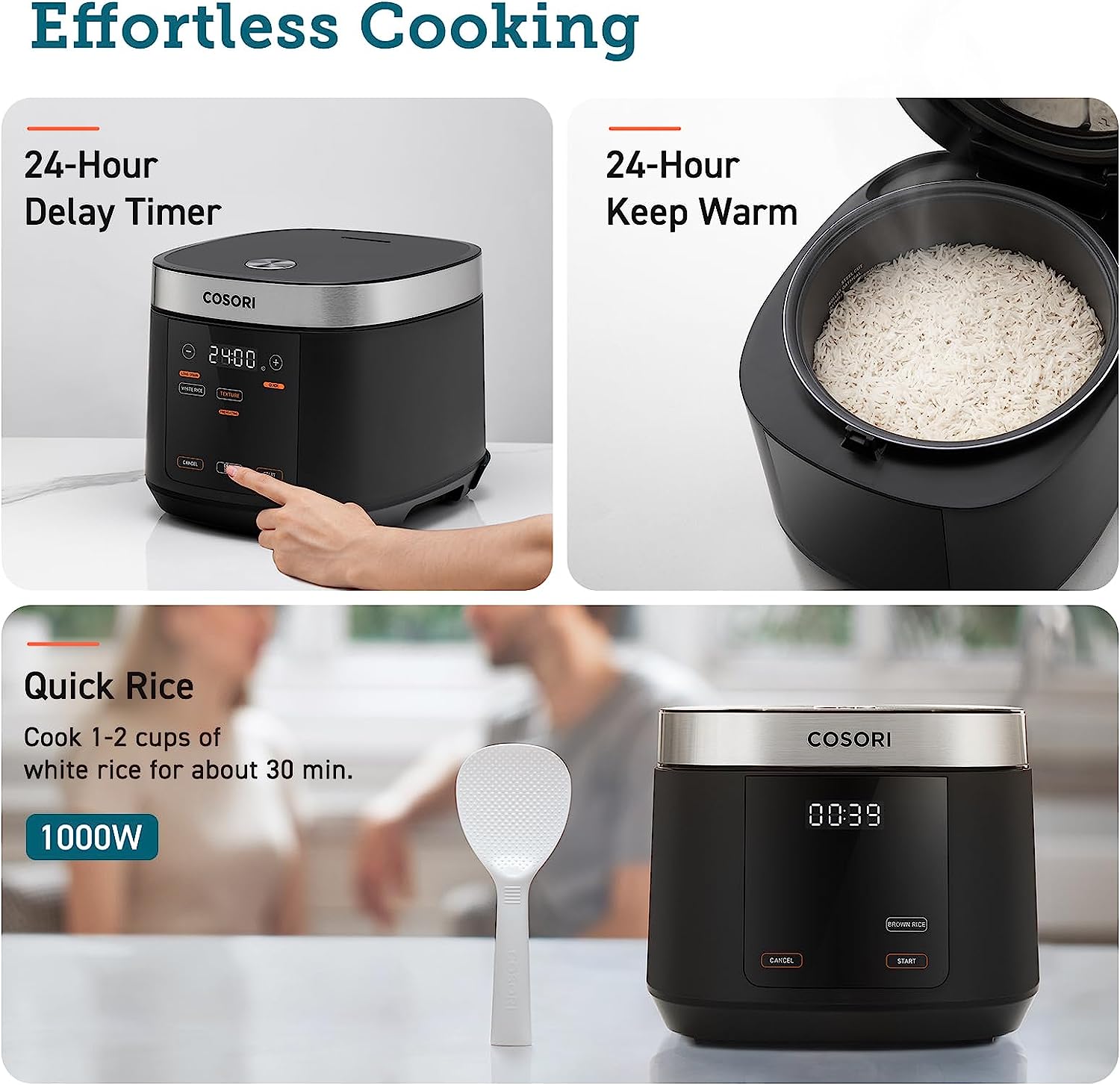 Top and bottom heating elements equipped with temperature sensors reduce condensation dripping back onto your rice for reduced sogginess and ideal textures.