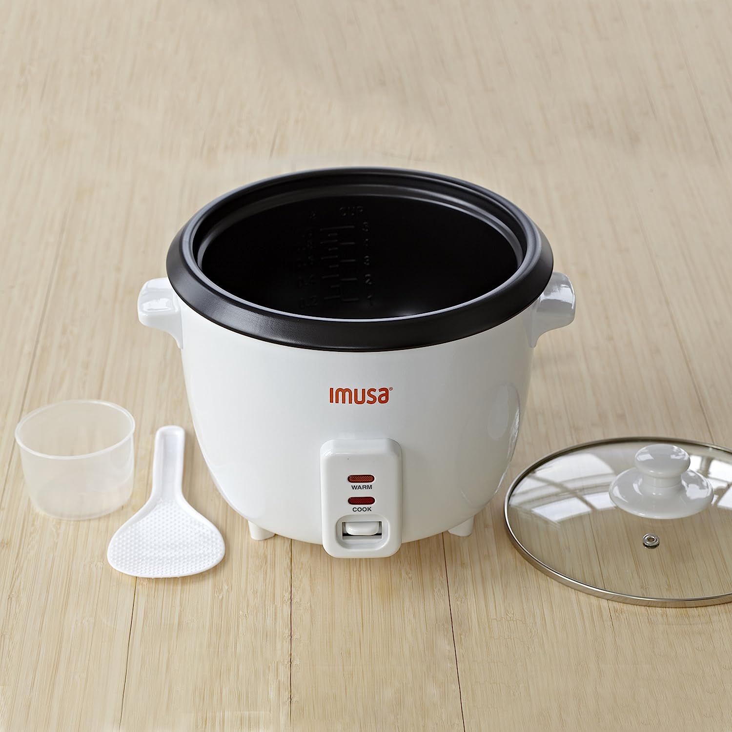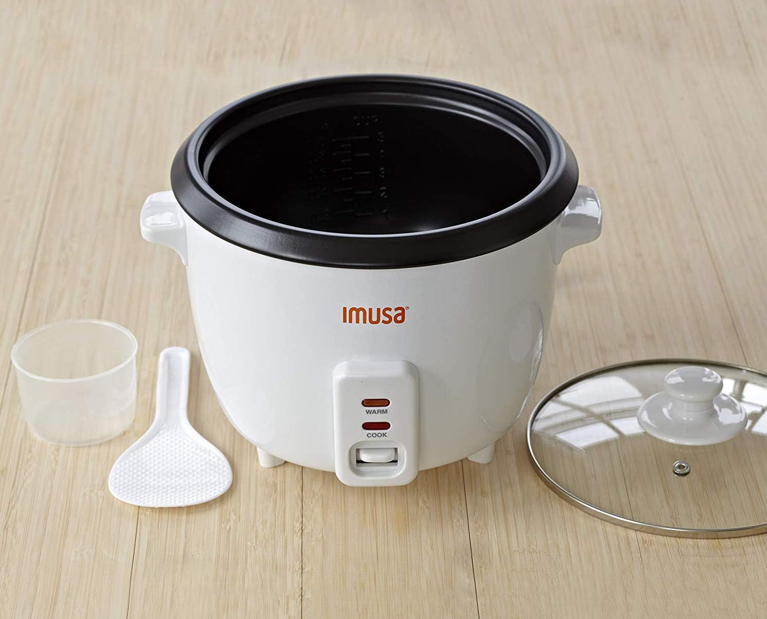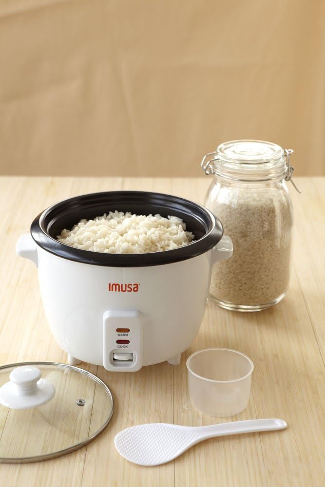 The IMUSA Rice & Multipurpose Cooker will make the perfect rice dish at the touch of a switch. The glass lid will allow you to monitor your rice as it cooks. Cleaning is easy with the removable nonstick coated pot, which prevents your rice and other foods from sticking. Make your favorite rice dishes, vegetables, oatmeal, and more with your IMUSA Rice & Multipurpose Cooker.