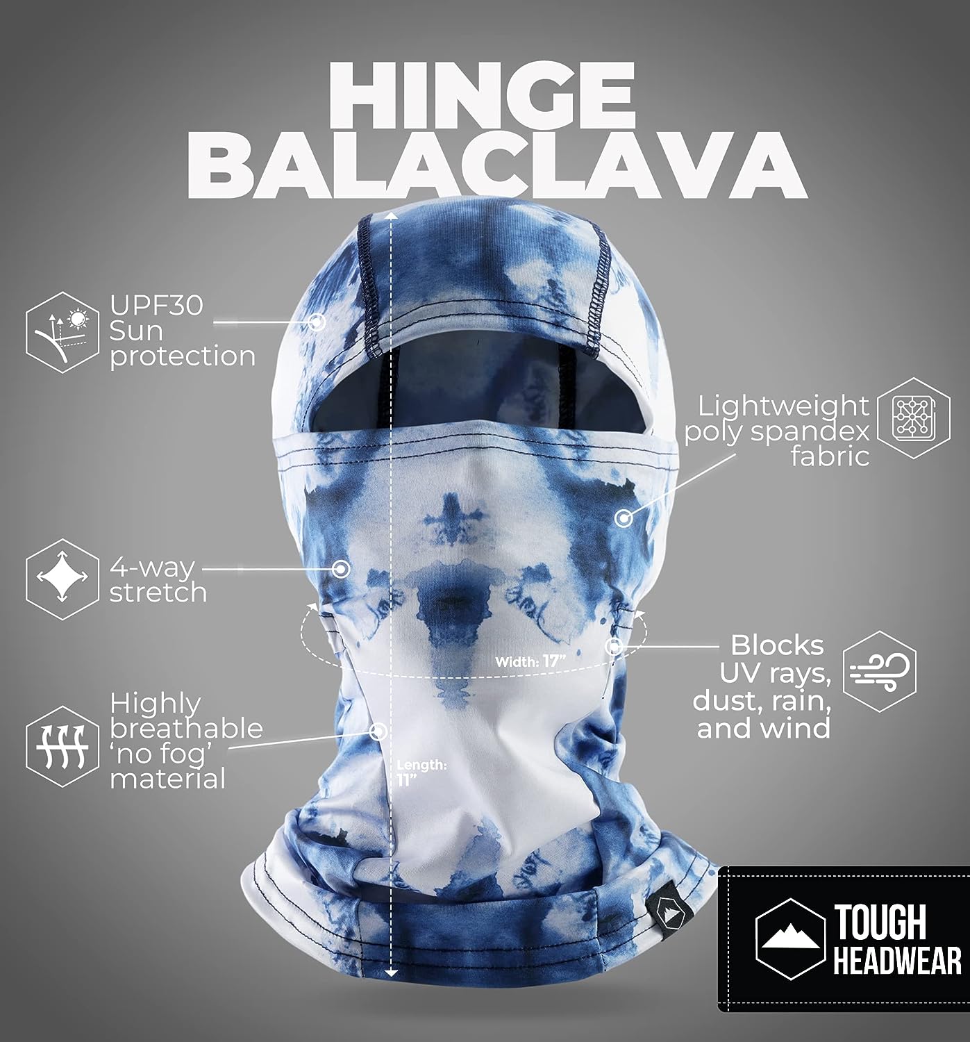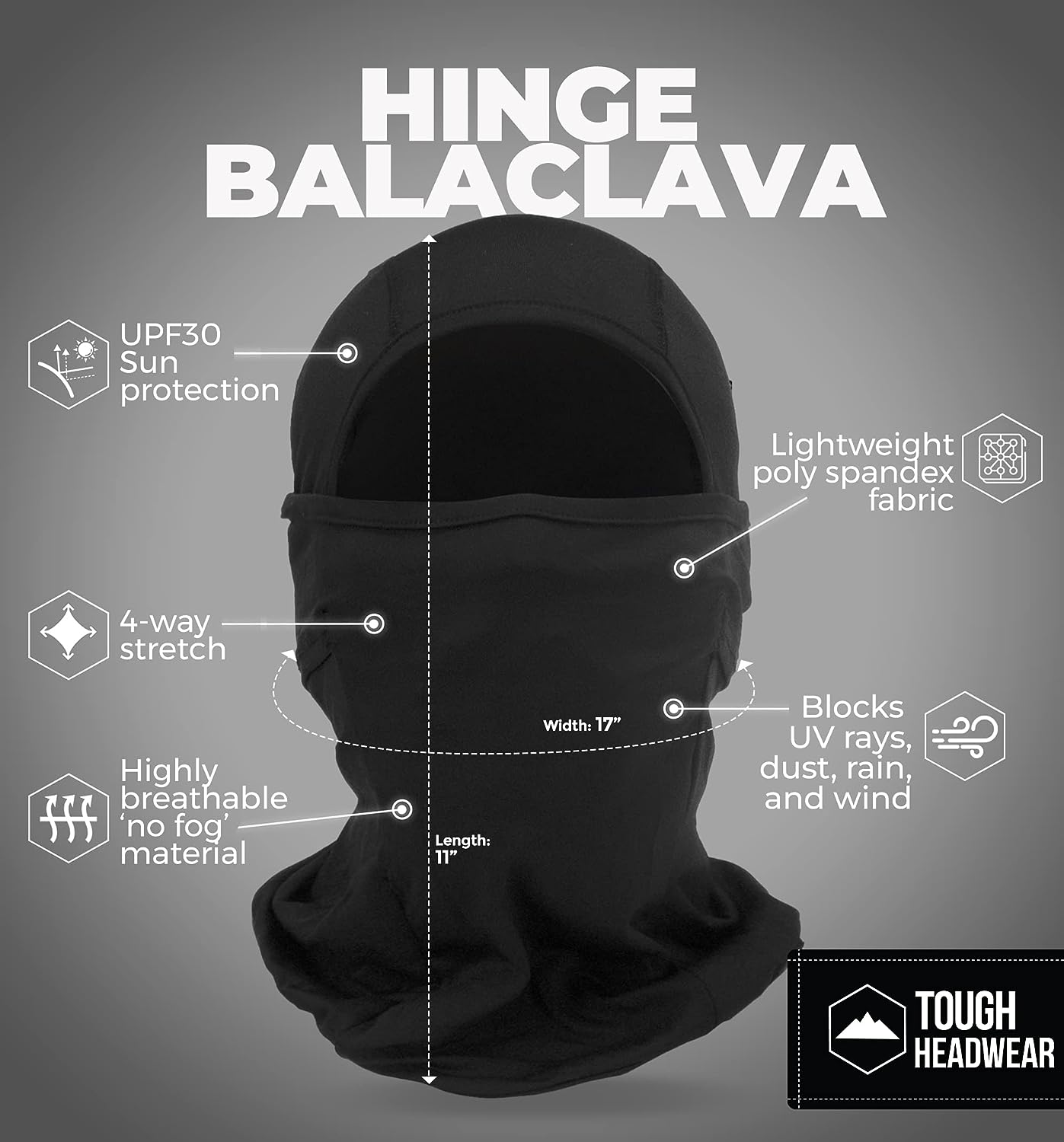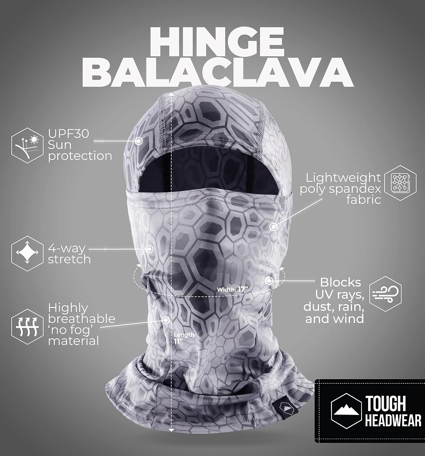 • LIGHTWEIGHT SUMMER PROTECTION: The Hinge Balaclava is a high-performance, lightweight balaclava summer-ready that blocks out UV rays, dust, and wind while keeping you cool and comfortable. The lightweight, 92% Polyester and 8% Spandex construction of this balaclava makes it perfect for summer activities like hiking, running, cycling, fishing, and motorcycling.